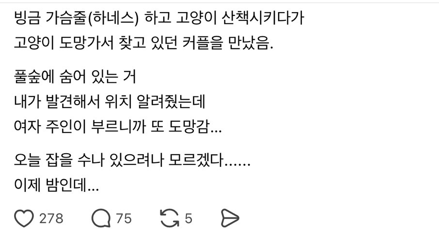 작성자먹밥쿵야 작성시간 26.02.02 대학가에 고양이 안고 산책 다니는 인간들 ㅈㄴ 많아.. 텅텅이들