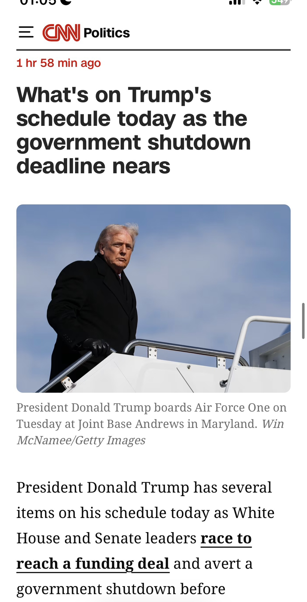 도널드 트럼프 대통령은 오늘 일정에 여러 항목이 포함되어 있으며, 백악관과 상원 지도자들이 자금 합의를 도출하고 내일 자정 마감 전에 정부 셧다운을 방지하기 위해 경쟁하고 있습니다.
