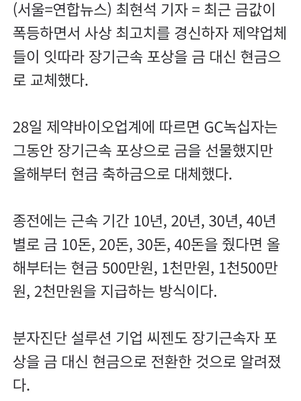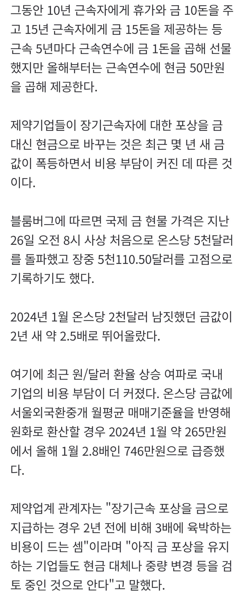 나도 근속5년차 포상 금 5돈이었는데 저번에 취업규칙 개편하면서 없어졌다면서 안주더라