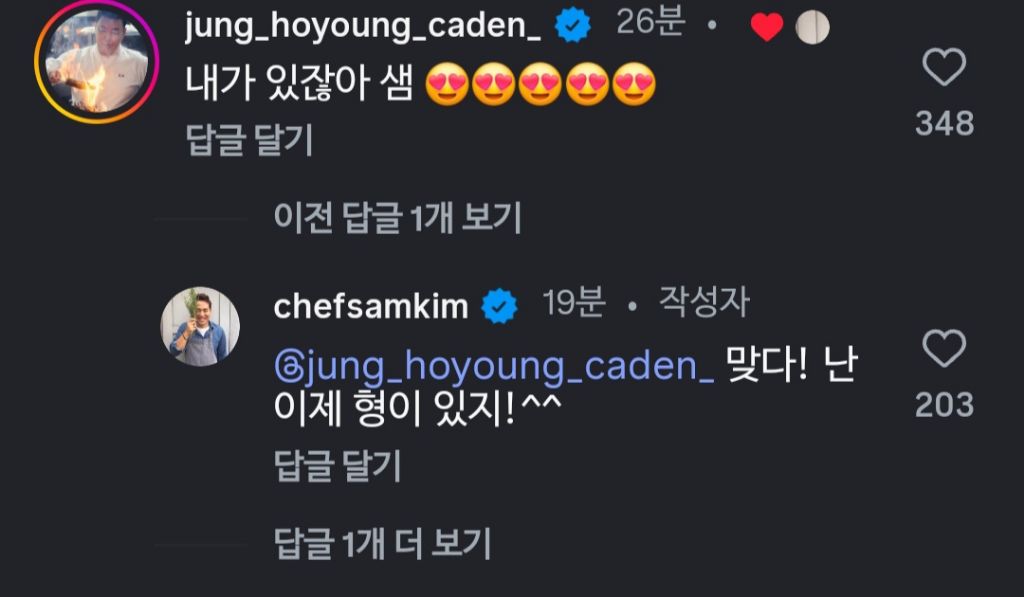 샘킴이 김풍에 대한 서운함을 인스타로 토로함