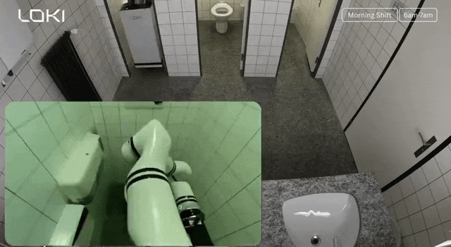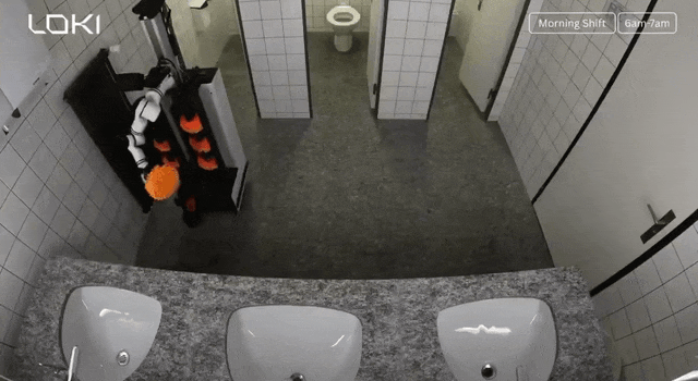 강력한 로봇팔로 변기, 세면대 표면의 오염물을 완벽히 닦아냄.