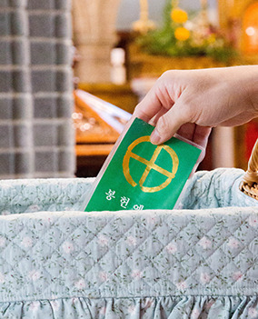 요렇게 저 커버 채로 봉헌금 함에 넣는 거임
