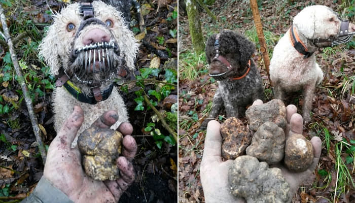 이처럼 탐스러운 트러플을 캐내기 위해 인간이 이용하는 존재가 있습니다. 바로 '트러플 탐지견'입니다. 이 생소한 이름의 강아지들은 말 그대로 트러플을 찾아내는 임무를 맡고 있습니다.