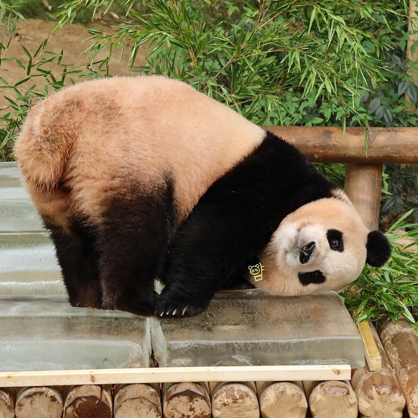 아이바오가 손짓으로 허락하자 천천히 다가와서