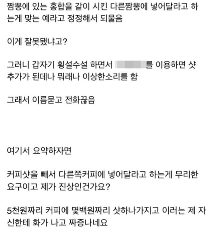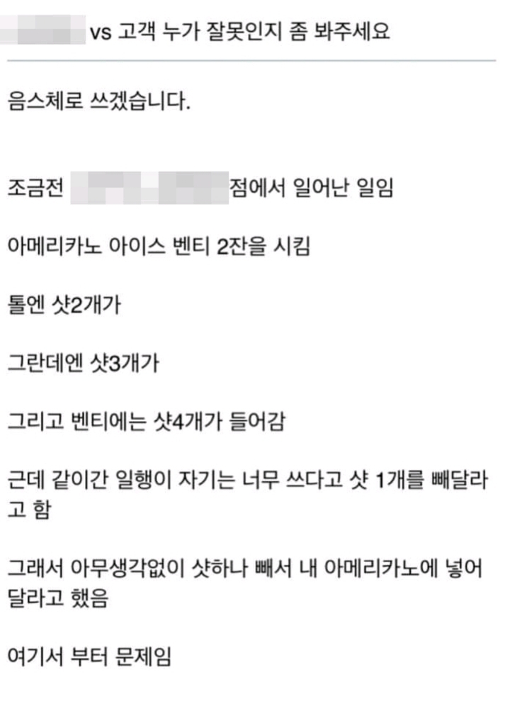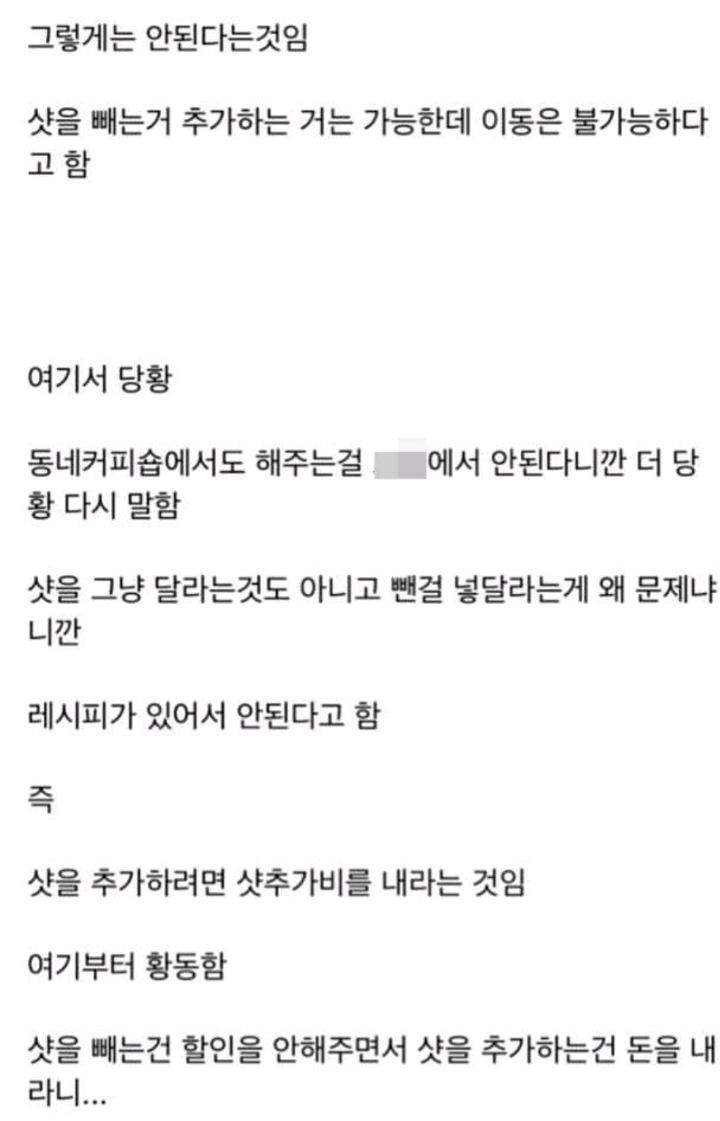 [스크랩] [흥미돋]같이 온 일행 샷 본인 커피에 넣어달라 했을 때 거절한 알바가 융통성이 없는거다 vs 손님이 진상이다