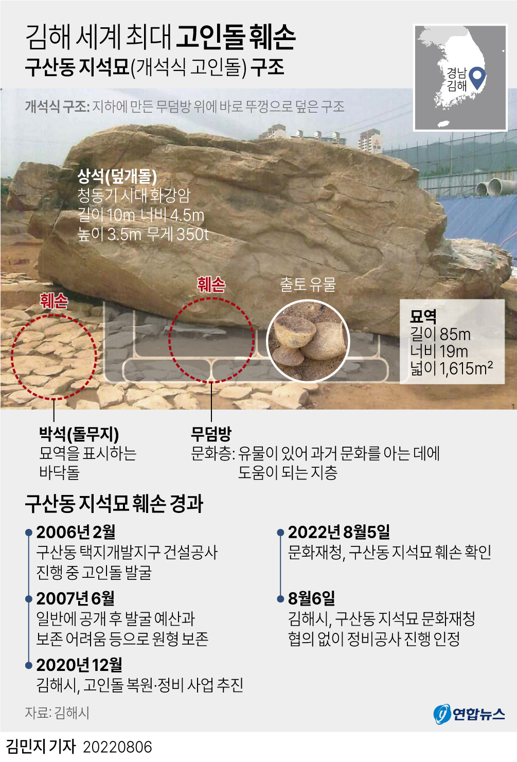 2007년 김해시 구산동에서 350톤짜리에 대규모 박석 부지가 있는 세계 최대 크기의 고인돌이 발견됨