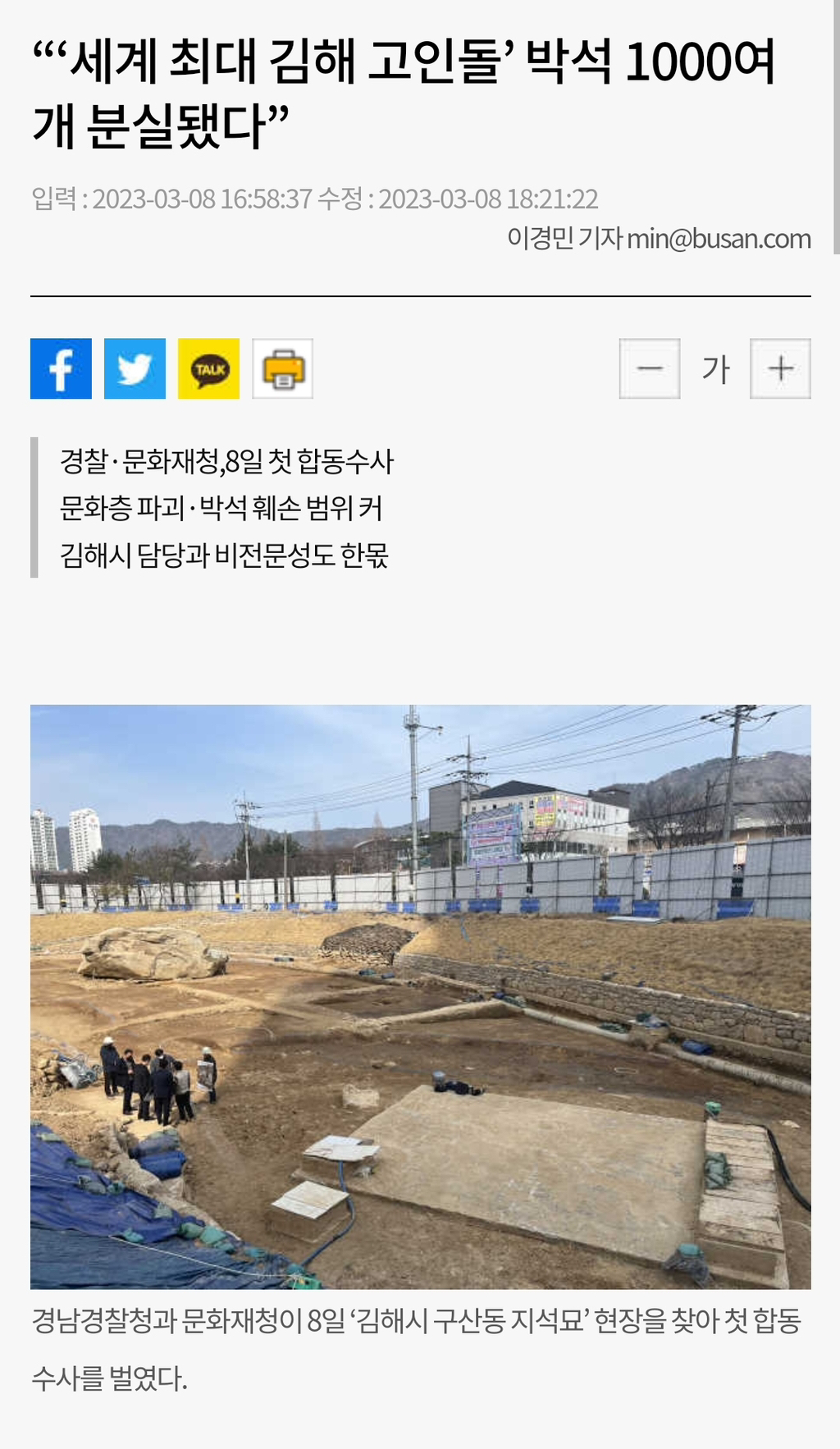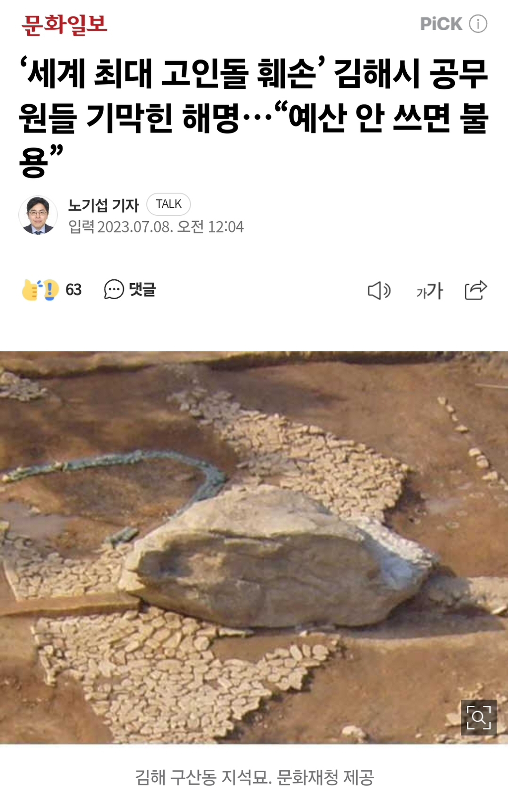 김해 지석묘 훼손사건은 불용예산 <- 이게 문제인듯