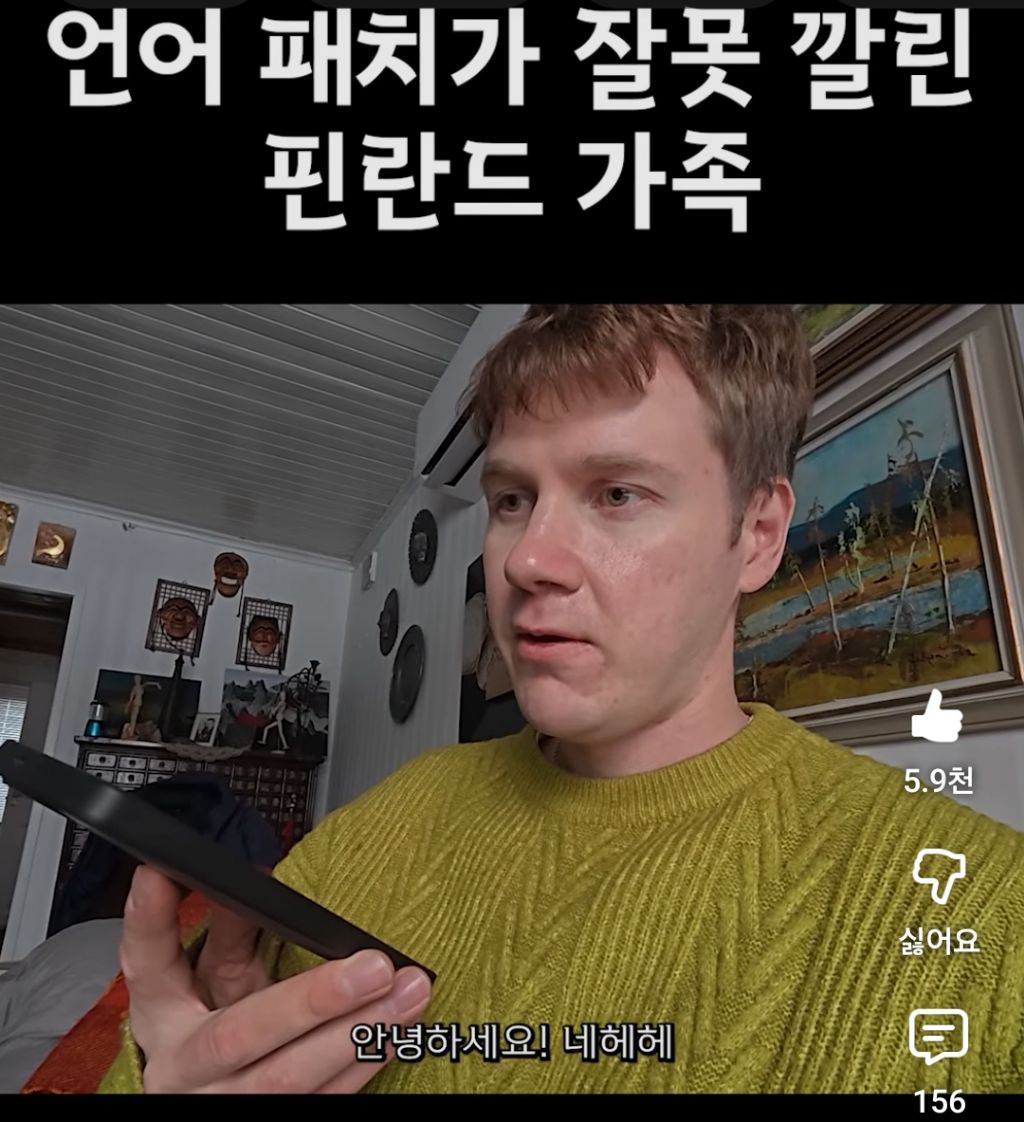 [흥미돋]언어 패치 잘못 깔린 핀란드 가족 작성자돌겠구먼유|작성시간26.01.31|조회수42,177 목록 댓글 29 글자크기 작게가 글자크기 크게가 출처: https://youtube.com/shorts/zligaUBLnWA?si=YLmp6NpAMhfLYwtT아버지 한국말 비즈니스로 배워서 존댓말 밖에 못하신다함 다음검색 현재 게시글 추가 기능 열기 북마크 공유하기 신고 센터로 신고 댓글 댓글 29 댓글쓰기 답글쓰기 댓글 리스트 작성자Eeee00 | 작성시간 26.02.01 저 영상에 안나오는데 다른 영상 보면 한국에서 태어난 형이 레전드야 형 한국어가 찐 네이티브임 ㄷㄷㄷ 작성자고양이 뽀뽀쪽 | 작성시간 26.02.01 으르신들 짱귀네ㅋㅋㅋㅋㅋ 작성자hawwah | 작성시간 26.02.01 비즈니스존댓말ㅋㅋㅋㅋㅋㅋㅋㅋㅋㅋㅋㅋㅋㅋㅋㅋㅋㅋㅋㅋㅋㅋㅋㅋ 작성자뤿킧 | 작성시간 26.02.01 ㄱㅇㅇ 작성자키 이 새 | 작성시간 26.02.01 와 뭐야ㅋㅋㅋㅋ 나보다 한국어 잘하는것 같은데 댓글 전체보기