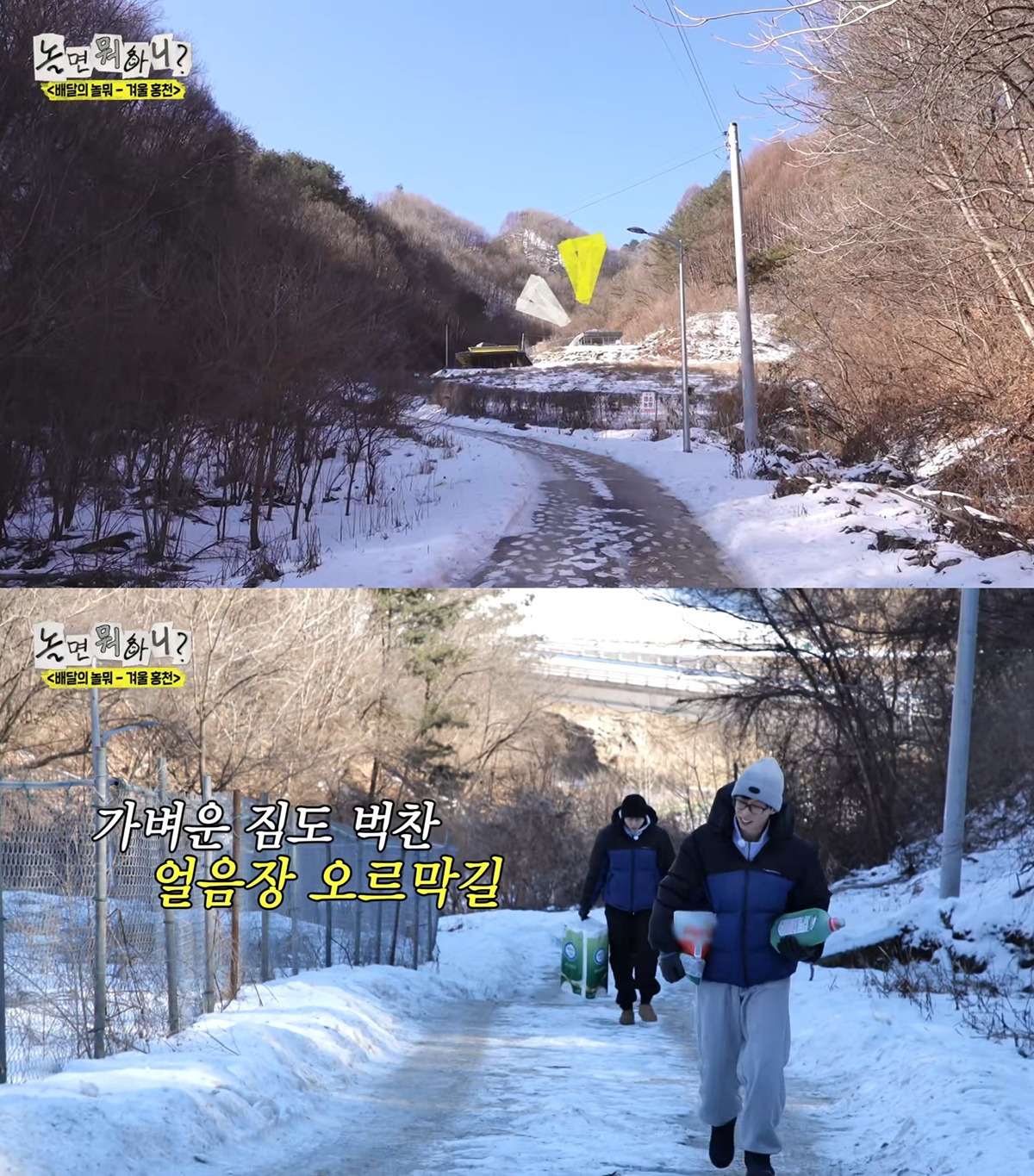 근데 꽤 경사 있고 길이 얼어있는 오르막