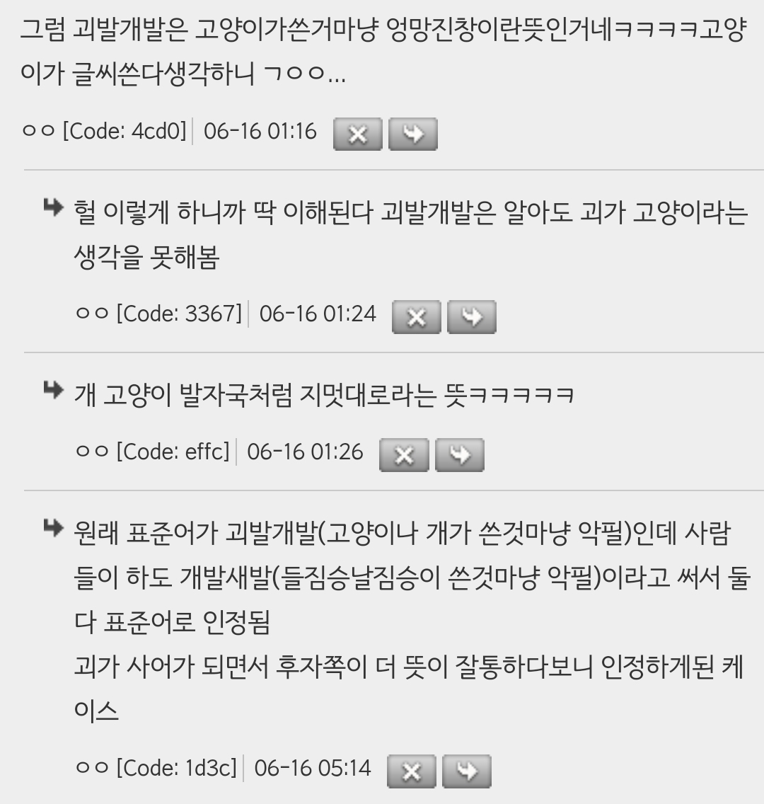 괴발개발의 괴가 고양이라고함ㅋㅋ