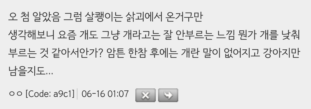 근데 괴는 사어가 되버리고 현재는 고양이가 동물 전체를 일컫는 말이 됨