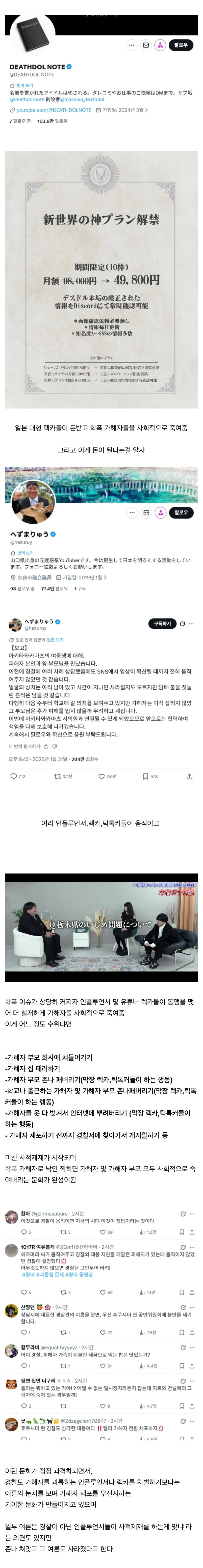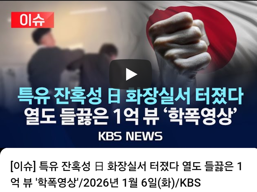 [흥미돋]최근 일본에서 학폭이슈가 계속 크게 터지는 이유 작성자bsnsmsi|작성시간26.02.01|조회수49,317 목록 댓글 239 글자크기 작게가 글자크기 크게가 출처: https://www.dmitory.com/issue/398688088그동안 쌓인 이지메 문화 피해자들이 터진거래이렇게 학폭하니까학폭 데스노트 유행학폭 자경단 렉카들이 깨끗한 사람이냐?ㄴ아님 어그로 ㅈㄴ많고 이상한 사람 많음근데 학폭피해자들이 계속 고통받으니까 렉카에 제보하는거 다음검색 현재 게시글 추가 기능 열기 북마크 공유하기 신고 센터로 신고 댓글 댓글 239 댓글쓰기 답글쓰기 댓글 리스트 작성자우히히우끼끼 | 작성시간 26.02.02 존나 재밌어보이긴 한다 작성자말티즈는귀엽다 | 작성시간 26.02.02 괜찮다 작성자싱가폴유목민 | 작성시간 26.02.02 도입해라 작성자뉴뉴냐냐시계 | 작성시간 26.02.02 굿 작성자내일은내가최고 | 작성시간 26.02.02 굿 댓글 전체보기