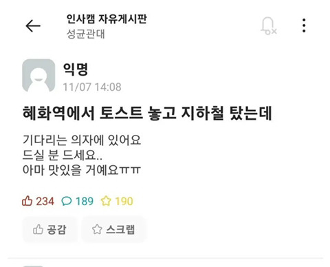 [흥미돋]토스트 놓고 지하철 탔는데 드실분 드세요ㅜㅜ.jpg 작성자pllo|작성시간26.02.01|조회수72,948 목록 댓글 22 글자크기 작게가 글자크기 크게가 출처: 여성시대 pllo 다음검색 현재 게시글 추가 기능 열기 북마크 공유하기 신고 센터로 신고 댓글 댓글 22 댓글쓰기 답글쓰기 댓글 리스트 작성자리부 | 작성시간 26.02.01 개웃기넼ㅋㅋㅋㅋㅋ캐 작성자보코니 | 작성시간 26.02.01 ㅋㅋㅋㅋㅋㅋㅋㅋㅋㅋ 작성자오버메르디 | 작성시간 26.02.01 ㅋㅋㅋㅋㅋㅋㅋㅋㅋㅋㅋㅋㅋㅋㅋㅋㅋㅋ 작성자졸업앨범 | 작성시간 26.02.01 따라한거 개웃기네ㅋㅋㅋㅋ 작성자나는당신만의따까리 | 작성시간 26.02.01 따라하지마세요 ㅋㅋㅋㅋㅋㅋㅋㅋㅋㅋㅋ 댓글 전체보기
