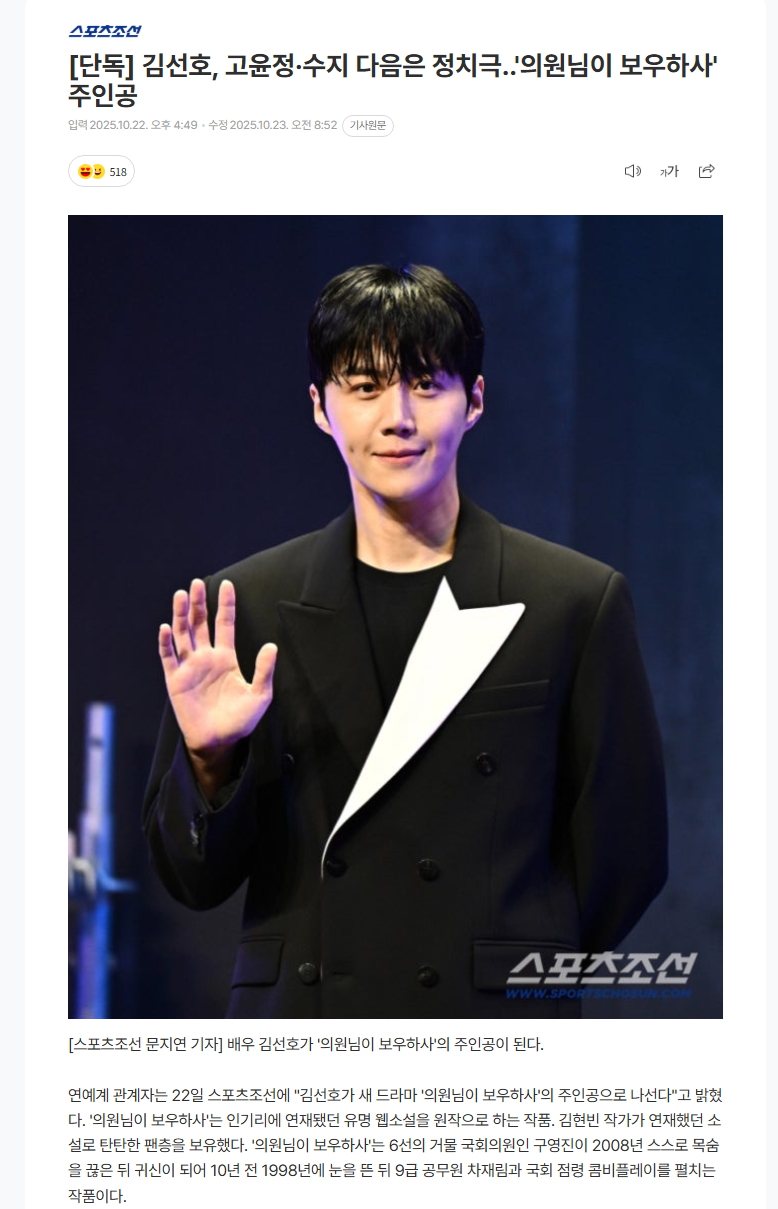 [흥미돋]오늘 탈세 기사 보도된 김선호 차기작 목록 작성자아흐레|작성시간26.02.01|조회수122,697 목록 댓글 412 글자크기 작게가 글자크기 크게가 출처: https://theqoo.net/square/4080714174 촬영 완료 2월 크랭크업 예정 하반기 방송 예정 다음검색 현재 게시글 추가 기능 열기 북마크 공유하기 신고 센터로 신고 댓글 댓글 412 댓글쓰기 답글쓰기 댓글 리스트 작성자춤추는 곰발바닥 | 작성시간 26.02.03 대체 얘를 누가 이렇게 써줌? 어이가 없다 여러모로 작성자아뮤거나 | 작성시간 26.02.03 아니 낙태남을 왜쓰냐고 그니까 아 여주인공들은 무슨죄야 ㅅㅂ 작성자whatsright | 작성시간 26.02.04 그니까 그 일 터지고 왜 또 꾸역꾸역 으이그~ 작성자아임낫어프린스 | 작성시간 26.02.07 누가 써주냐 진짜 시청자 농락 작성자제주살이호호이 | 작성시간 26.02.07 다른배우 썼으면 봤을텐데 에공 여배우 아깝 ㅜㅜ 댓글 전체보기