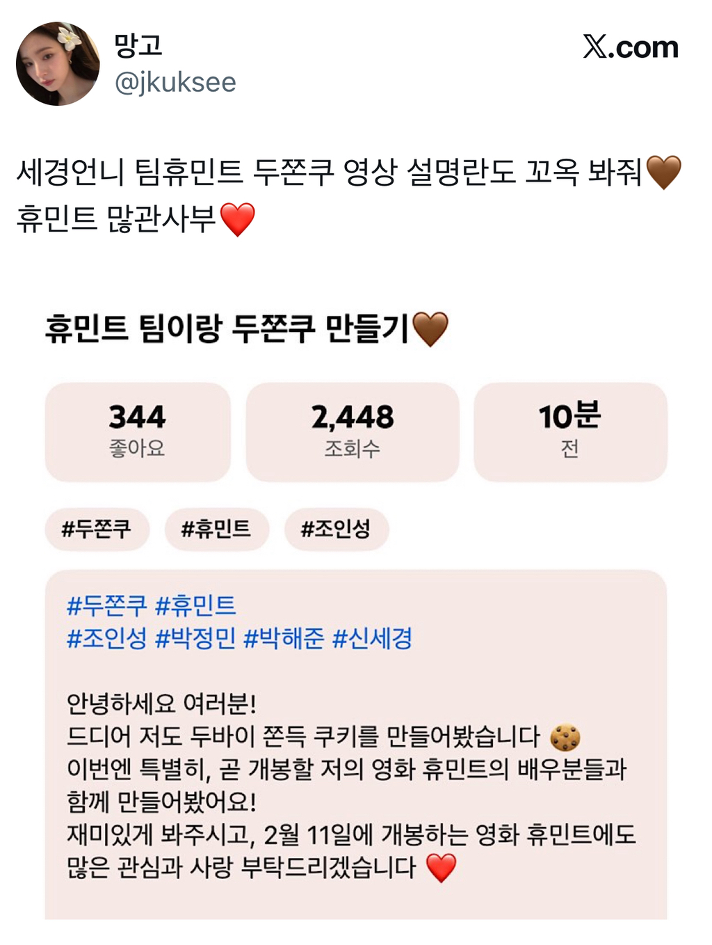이번에는 휴민트팀이랑 두쫀쿠 만들어옴