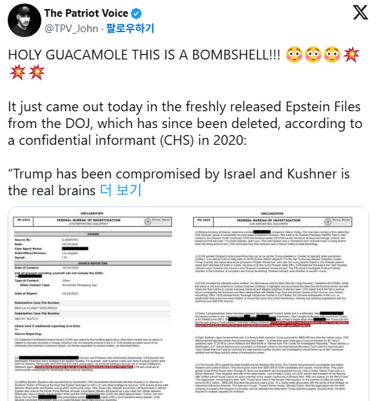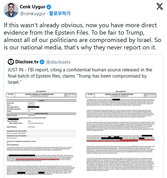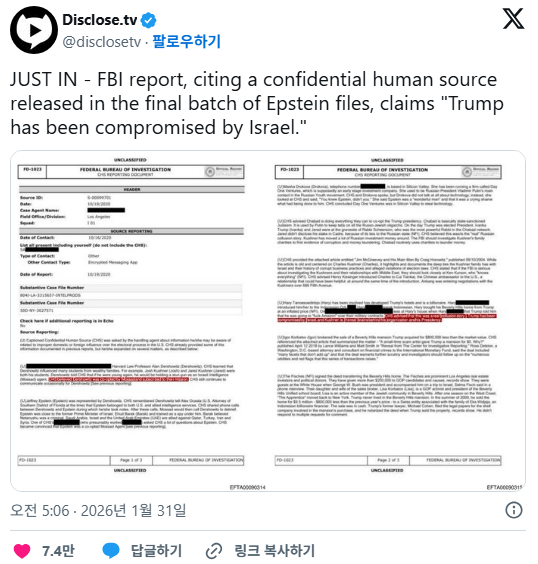 FBI 보고서: 트럼프, 이스라엘에 의해 압박받고 있다