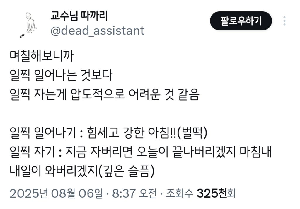 작성자뚤기뚤 작성시간 26.02.02 난일찍일어나는게짖따개힘들어죽고싶어