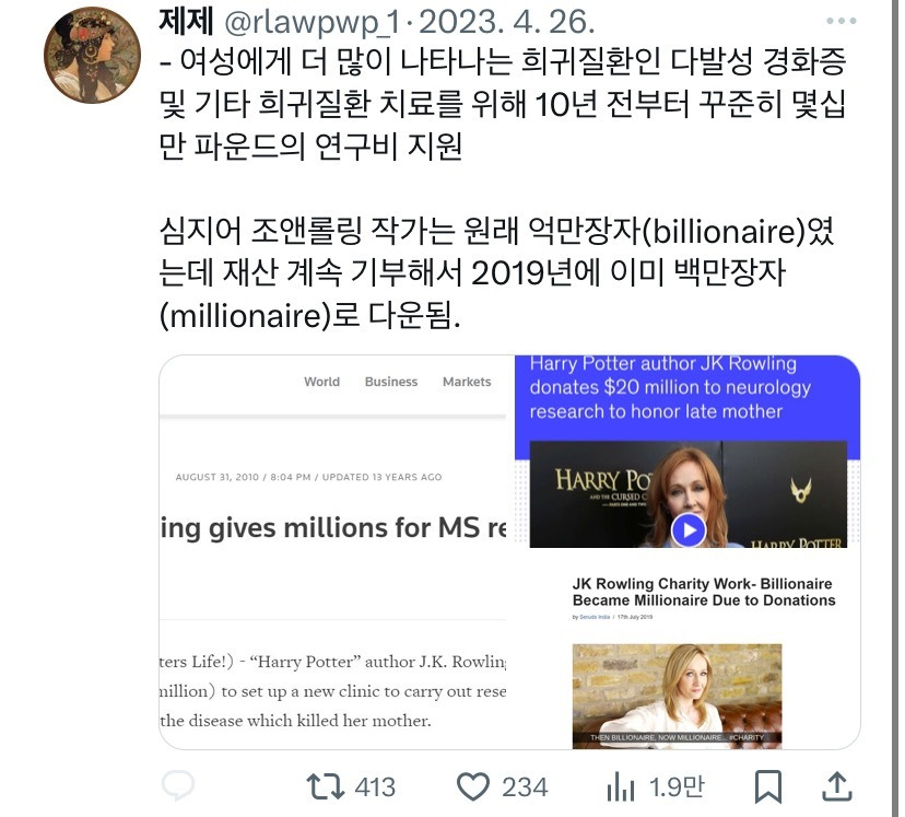 [스크랩] [흥미돋]롤링이 억만장자에서 백만장자로 내려간 이유 작성자본인 닉네임.|작성시간26.02.01|조회수67,698 목록 댓글 42 글자크기 작게가 글자크기 크게가 출처: https://www.dmitory.com/issue/346958670 다음검색 스크랩 원문 : *여성시대* 차분한 20대들의 알흠다운 공간 현재 게시글 추가 기능 열기 북마크 공유하기 신고 센터로 신고 댓글 댓글 42 댓글쓰기 답글쓰기 댓글 리스트 작성자시드니해양대학교해녀과 | 작성시간 26.02.02 역시 여자들은 큰 돈 벌면 큰 일 한다 작성자정관장모닝 | 작성시간 26.02.02 역시 여자 챙겨줌 최고의 위인임 작성자BeGenuine. | 작성시간 26.02.02 존나내럴모델 작성자아르를오르를 | 작성시간 26.02.02 뢀모델 작성자영앤리치치리뱅뱡 | 작성시간 26.02.02 진짜 롤링이 최고다 댓글 전체보기
