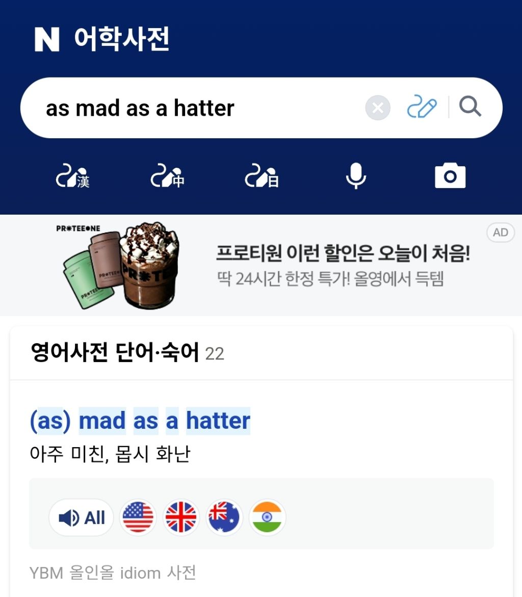 as mad as a hatter는 (모자장수처럼) 미쳐있다는 숙어로 통해