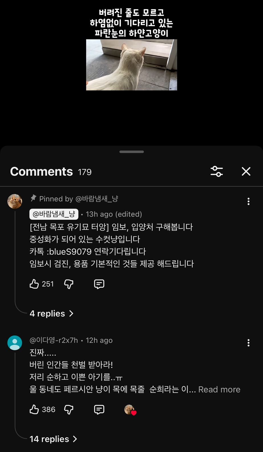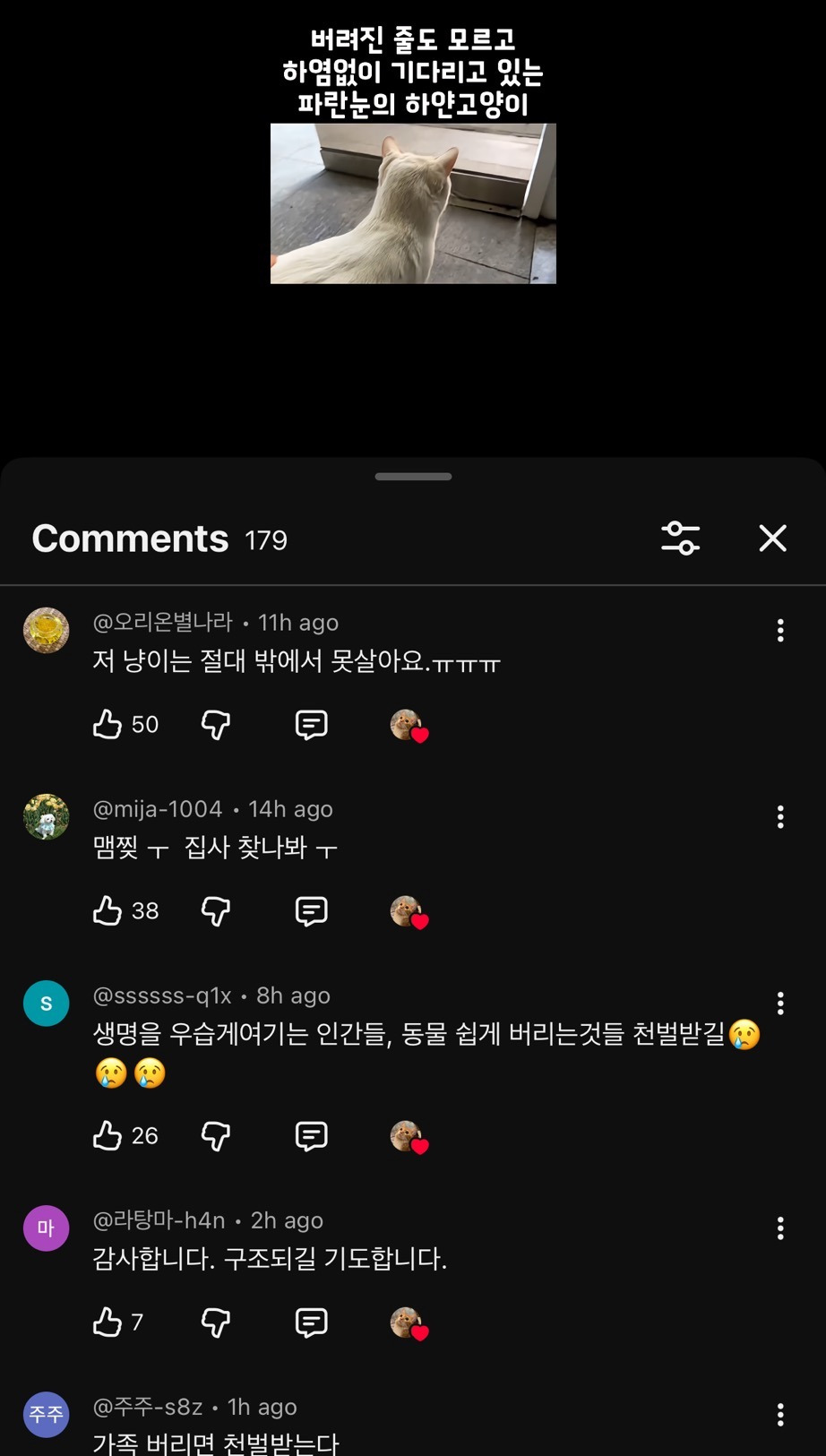 작성자영원히기억., 작성시간 26.02.02 진짜 인간이 제일 쓰레기.. ㅠㅠ 나 학교 근처 자취할때 길거리에서 품종묘 진짜 많이봄.. 인간들아 그렇게 살지마라 ㅠㅠ