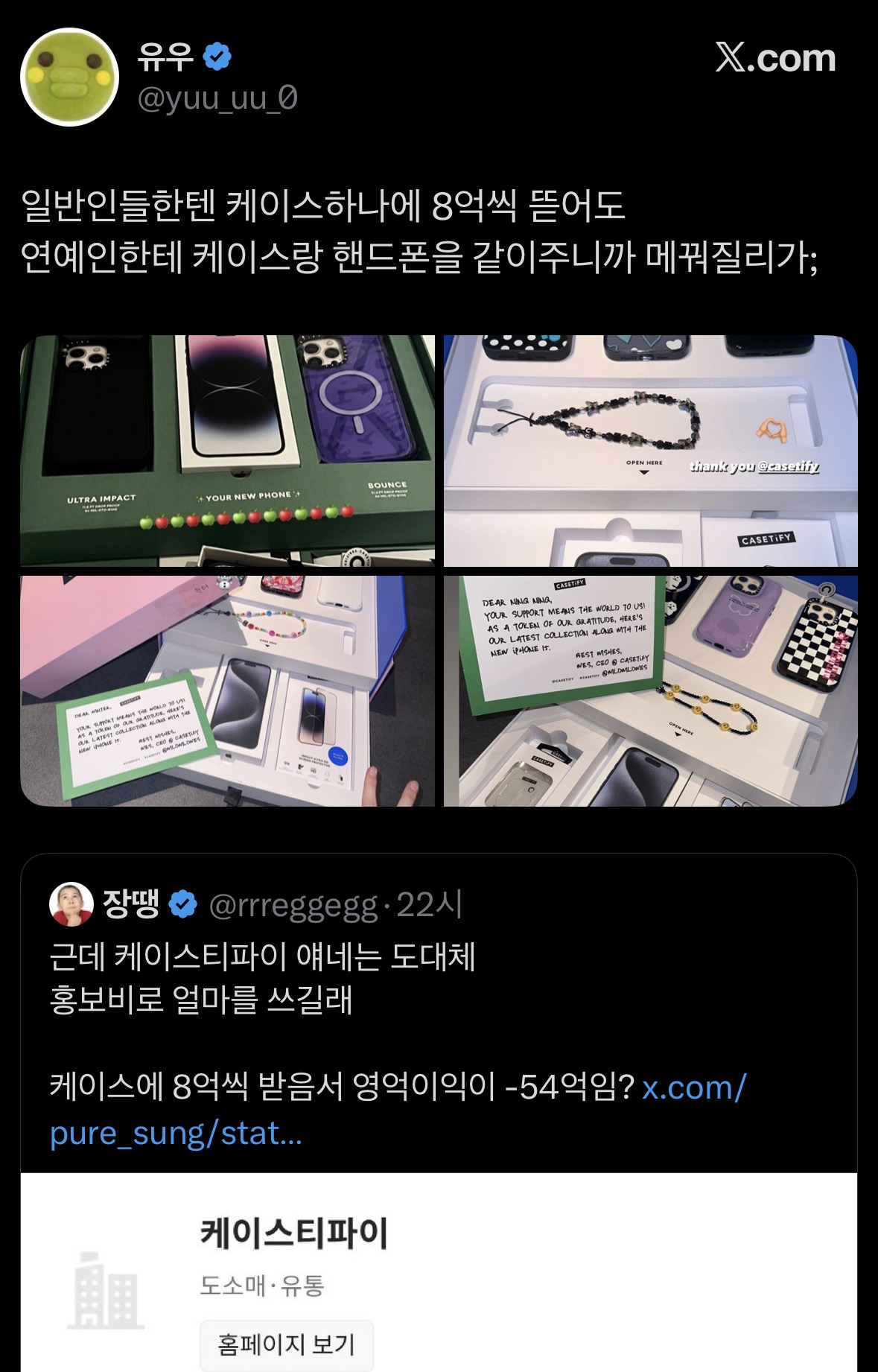 [흥미돋]연예인들한테 핸드폰이랑 케이스 같이 뿌리는 케이스티파이.x 작성자노티드얼그레이|작성시간26.02.02|조회수15,035 목록 댓글 63 글자크기 작게가 글자크기 크게가 출처: https://x.com/yuu_uu_0/status/2017889669095313878?s=46X의 유우님(@yuu_uu_0)일반인들한텐 케이스하나에 8억씩 뜯어도 연예인한테 케이스랑 핸드폰을 같이주니까 메꿔질리가;x.com 다음검색 현재 게시글 추가 기능 열기 북마크 공유하기 신고 센터로 신고 댓글 댓글 63 댓글쓰기 답글쓰기 댓글 리스트 작성자과자사랑단 | 작성시간 26.02.02 이래서 절대안씀ㅋㅋㅋㅋㅋ 작성자ISTJ입니다 | 작성시간 26.02.02 염병천병 작성자고고레츠고 | 작성시간 26.02.02 진짜 개염병을 하는듯 작성자쿠우쿠우화장실문지기 | 작성시간 26.02.03 ~내돈으로 연예인 핸드폰 사주기 캠페인~ 작성자다롱아사랑해 | 작성시간 26.02.03 나도 저거 알고 절대 안삼.. 댓글 전체보기