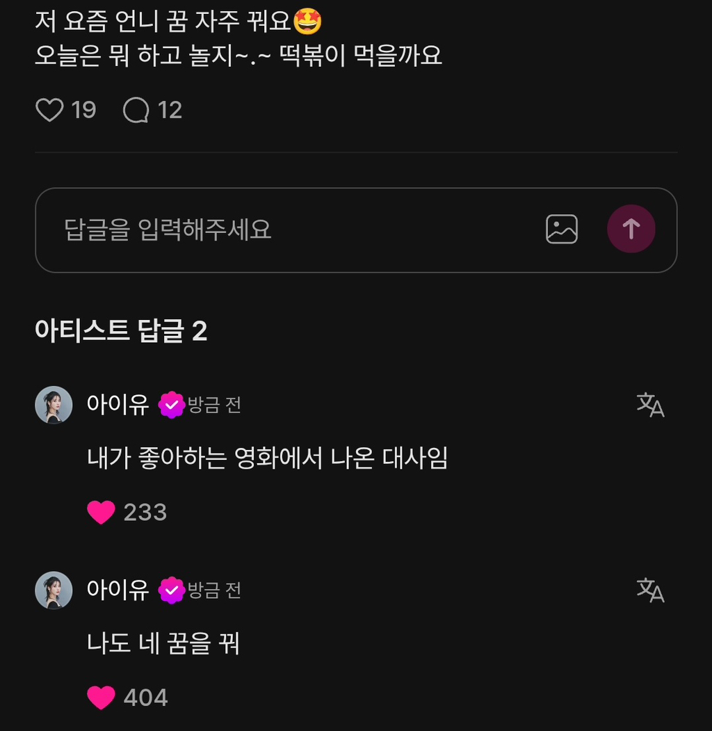저 요즘 언니 꿈 자주 꾼다는 팬의 말에