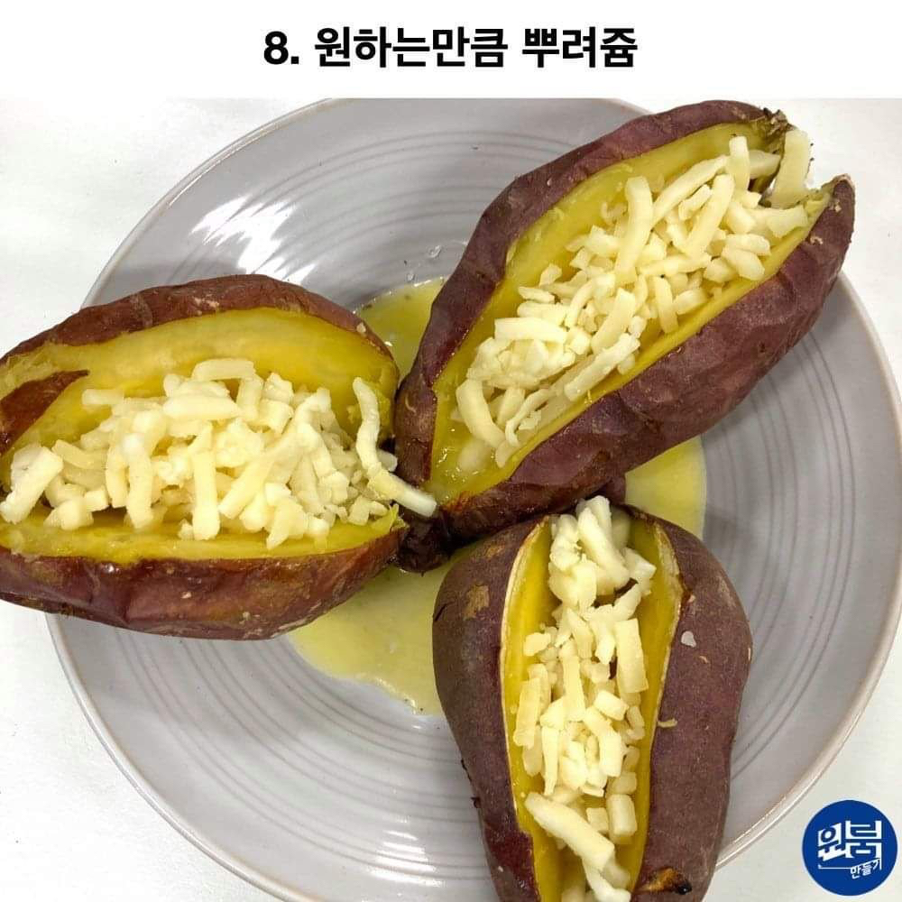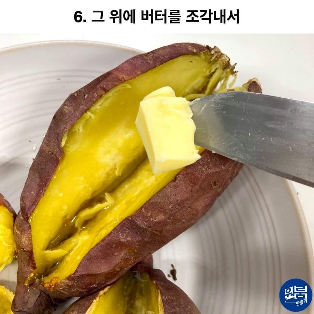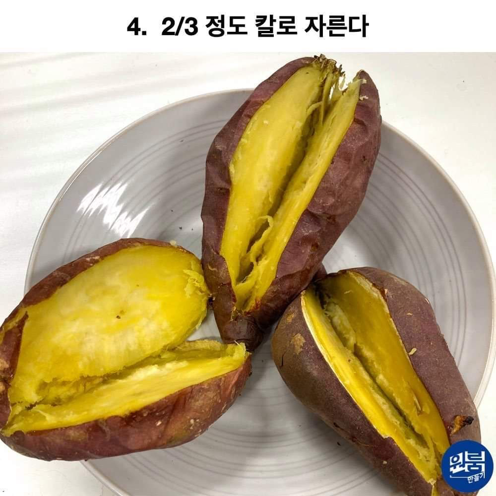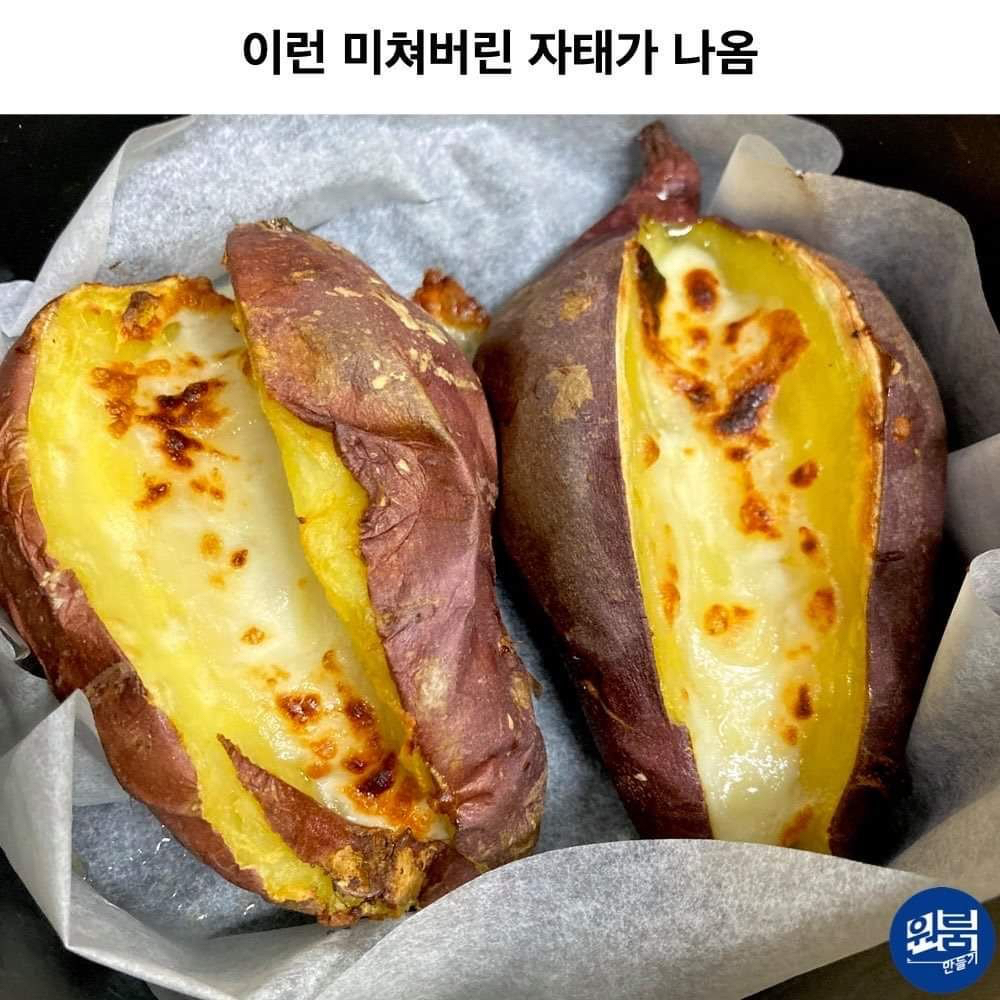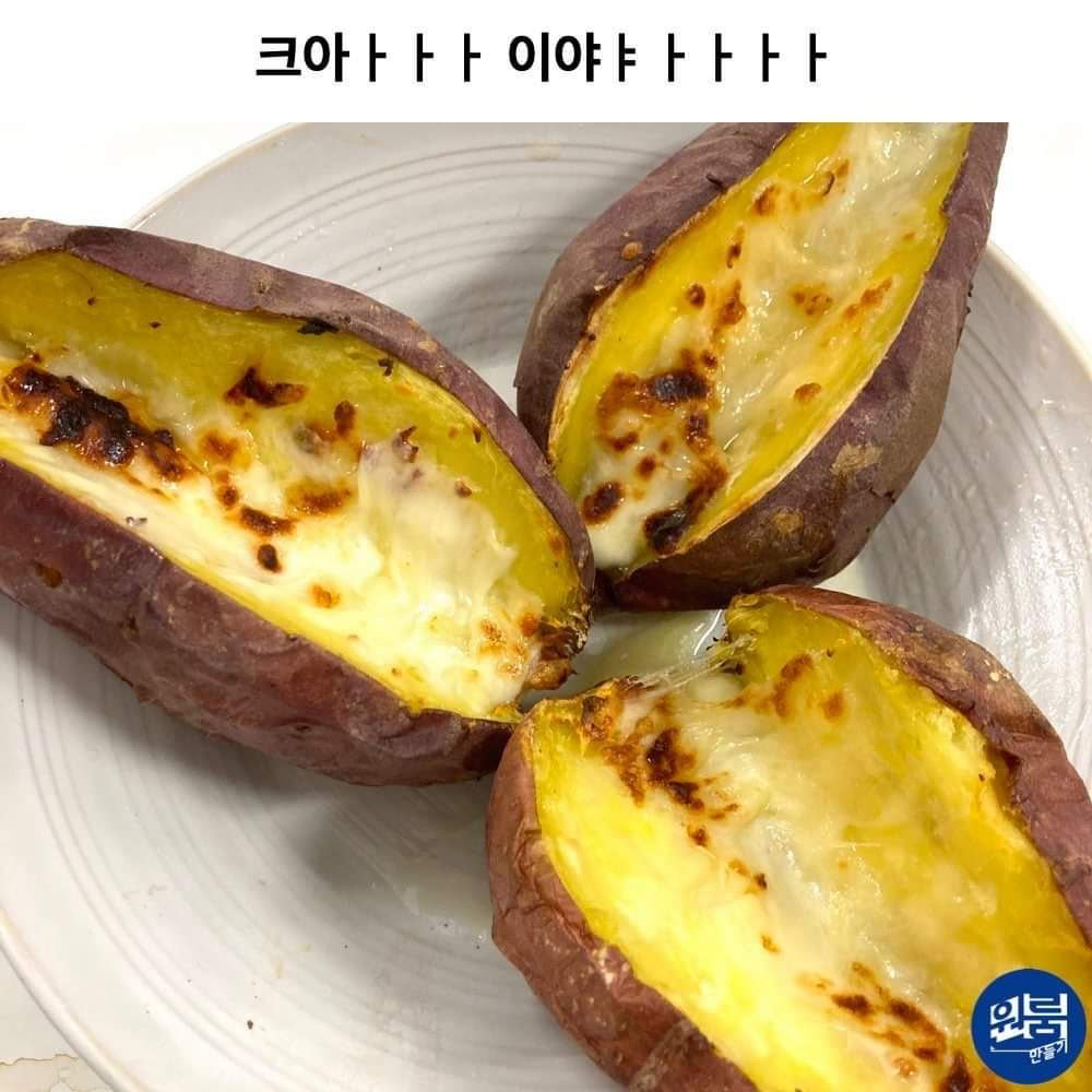 작성자GUMMY 작성시간 26.02.02 고구마 삶거나 찐다음에 사진처럼 반 갈라서 아웃백에서 빵포장 할때 주는 망고스프레드 발라서 에프 돌리면 맛있음