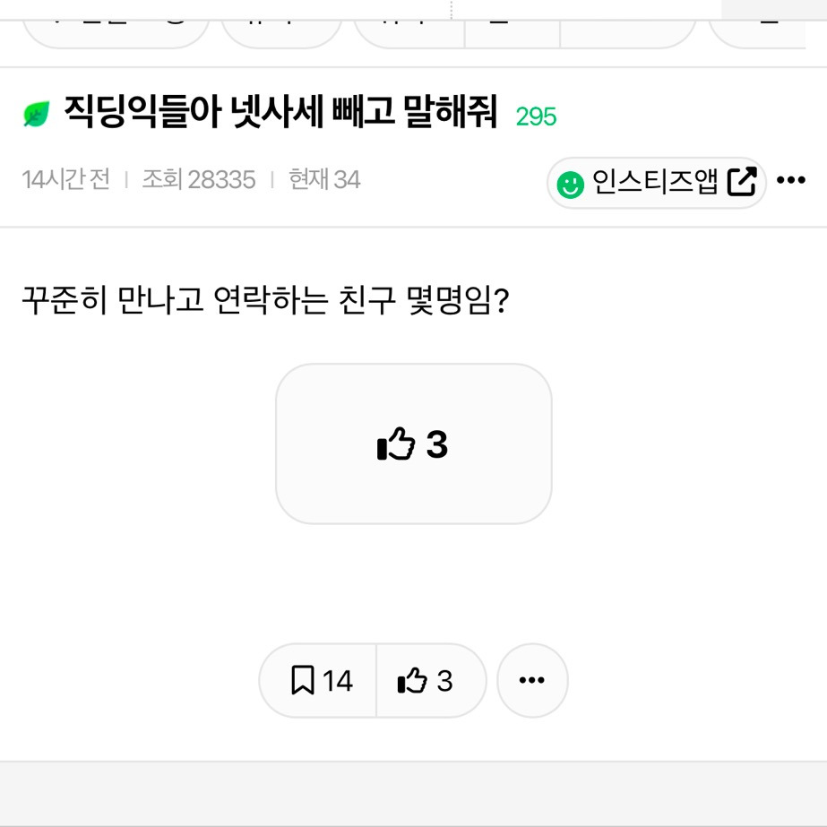 [스크랩] [기타]직딩들아 넷사세 빼고 말해줘 작성자엥엥ㅇ|작성시간26.02.02|조회수54,057 목록 댓글 387 글자크기 작게가 글자크기 크게가 근데 어른되고나니까 일년에 한번만나는것도 친한친구같음.. 다음검색 스크랩 원문 : *여성시대* 차분한 20대들의 알흠다운 공간 현재 게시글 추가 기능 열기 북마크 공유하기 신고 센터로 신고 댓글 댓글 387 댓글쓰기 답글쓰기 댓글 리스트 작성자플로리다 | 작성시간 26.02.03 6~7명 작성자패더스맥그로 | 작성시간 26.02.03 1년에 1-2번 만나는것도 친구면 6명, 아니면 0명 작성자소금우유 홈런볼 | 작성시간 26.02.03 15명.. 1년에 한번은 2명정도 더? 작성자롤로노아 조로 | 작성시간 26.02.04 5 작성자대느터내 | 작성시간 26.02.04 ㄹㅇ 1년에 한 번 만나면 개친한건데… 나도 한 8명? 댓글 전체보기