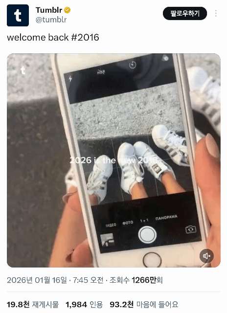 2016년 때 사진을 sns에 올리는 게 이 유행의 놀이 같은 건데