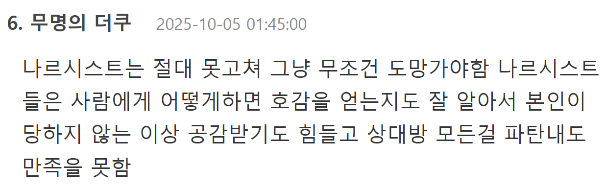 작성자Maxmara 작성시간 26.02.03 나르시시즘이랑 나르시시스트랑달라
