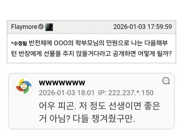 작성자딸기타르트 작성시간 26.02.03 근데 요즘같은 학교 분위기에 머랄까 민원받을짓 한거 맞긴함