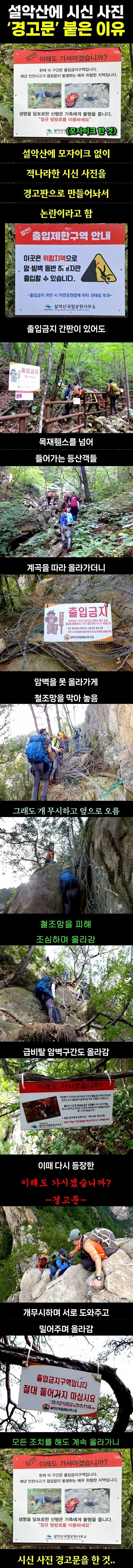 [칵.cxxx]설악산에 시신사진이 붙어있는 이유 작성자노예와 12똥냥|작성시간26.02.03|조회수51,304 목록 댓글 82 글자크기 작게가 글자크기 크게가 출처: 여성시대 노예와 12똥냥 저래놓고 부상당하면 살려달라고 구조대 부르겠지ㅡㅡ 다음검색 현재 게시글 추가 기능 열기 북마크 공유하기 신고 센터로 신고 댓글 댓글 82 댓글쓰기 답글쓰기 댓글 리스트 작성자흰탄 | 작성시간 26.02.03 ㅋㅋㅋㅋㅋㅋ아 꾸역꾸역 가는거 헛웃음 나오네 작성자볼파이톤 | 작성시간 26.02.03 저쪽은 수색도 안해야함 신고해도 데리러 안가고그래야 겁먹고 안가지 ㅅㅂ 작성자아픈마음까지철거 | 작성시간 26.02.03 지들이 스스로 죽으러 간거를 구해줘야됨? 그냥 저런것들 출동비랑 해서 벌금 물게 만들어야지 작성자202611 | 작성시간 26.02.03 살려주지말자 작성자일룸머스크 | 작성시간 26.02.05 설악산 그냥 루트도 개무서웠는데 왜저러는거야 댓글 전체보기