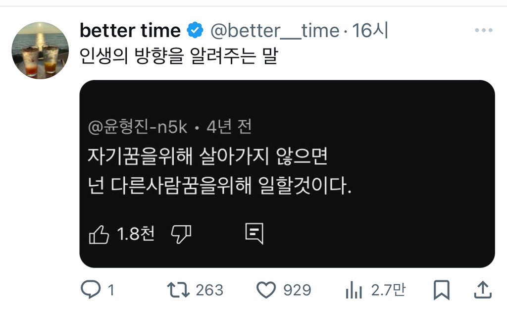 작성자꿍디팡팡 작성시간 26.02.03 난 꿈이 없어 다른사람 꿈 도와주면서 돈도 벌면 좋지 뭐