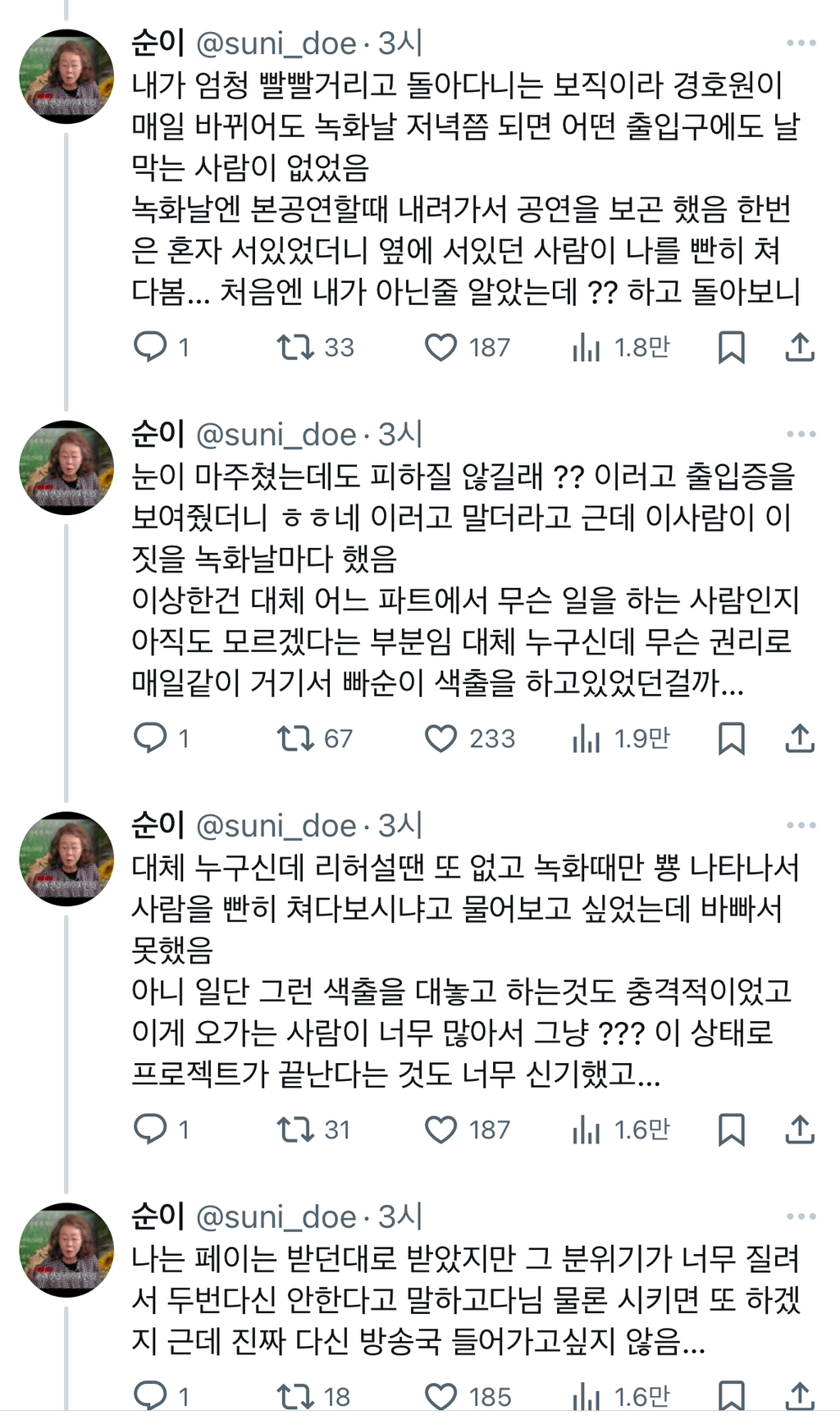 엄청 고압적인 태도여서 내가 반응이 안좋으니까 갑자기 그 주변 사람들이 이 분 피디라고 함 ㅋㅋㅋㅋㅋㅋ 어쩌라고 ㅋㅋ