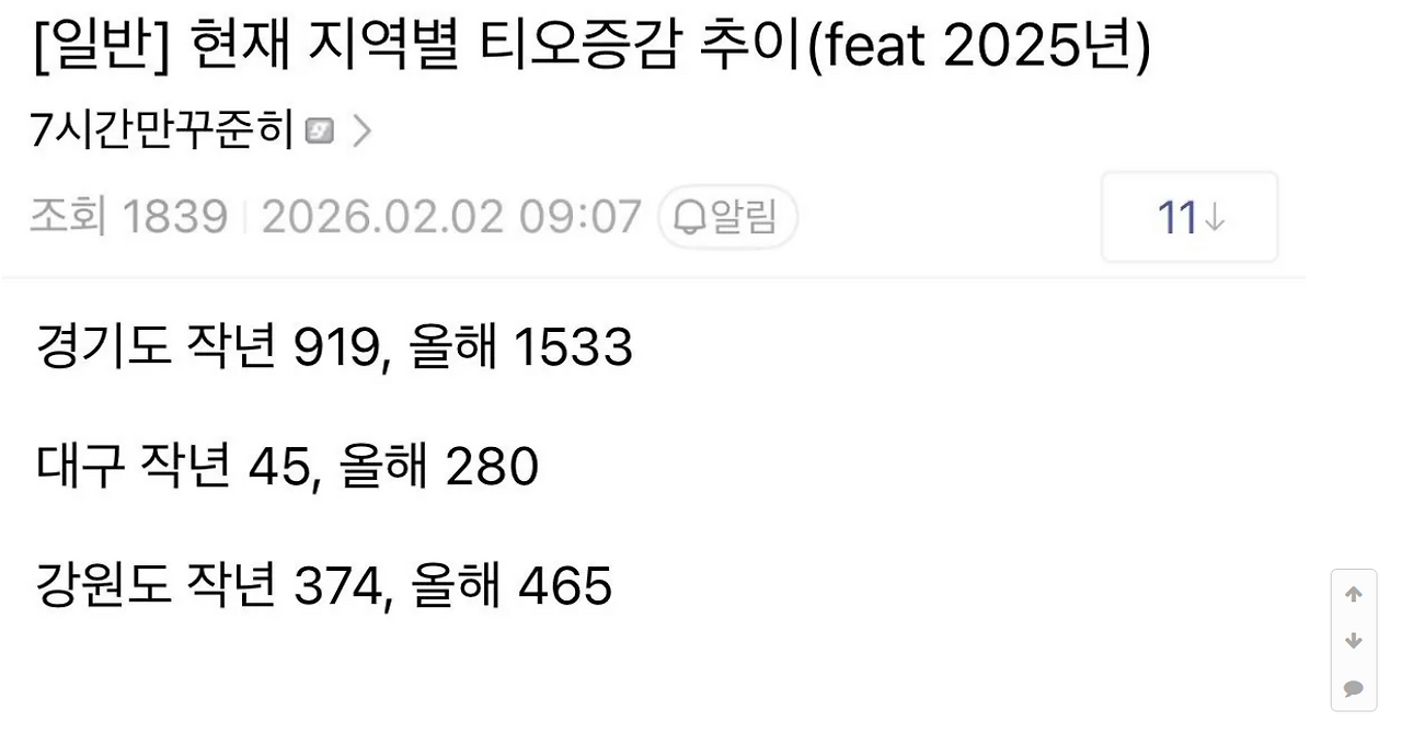 [흥미돋]올해 대박난 지방공무원 티오.jpg 작성자감기약먹고자야지|작성시간26.02.03|조회수111,607 목록 댓글 66 글자크기 작게가 글자크기 크게가 출처: https://www.dmitory.com/issue/398943794 다음검색 현재 게시글 추가 기능 열기 북마크 공유하기 신고 센터로 신고 댓글 댓글 66 댓글쓰기 답글쓰기 댓글 리스트 작성자Wildflower | 작성시간 26.02.05 우리지역은안떴슈.. 작성자냥먕먕 | 작성시간 26.02.10 걍 당분간 67부터 70년생까지 역대급 규모의 당연퇴직이라 그런듯 작성자윤나고 | 작성시간 26.02.10 면직자 엄청많아 5년차 이내 25%정도가 면직했어 저중에 한곳임 작성자완다쨩 | 작성시간 26.02.11 많이 뽑는 데는... 이유가 있음 작성자공띠 | 작성시간 26.02.11 공시생땐 티오 대박났을때 행복했지..ㅈㄴ이유가 있었음.. 댓글 전체보기