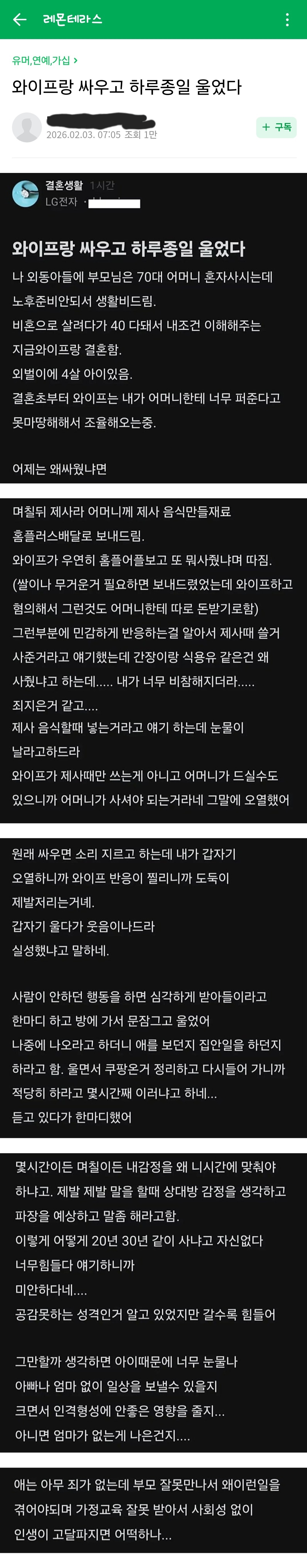 작성자망고초코과일 작성시간 26.02.07 애를 보든지 집안일을 하든지 엄마랑 둘이살든지