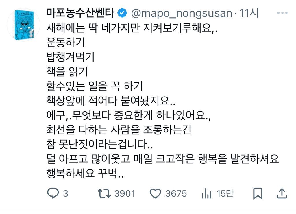 [스크랩] [흥미돋]새해에는 딱 네가지만 지켜보기루해요 작성자엥엥ㅇ|작성시간26.02.03|조회수7,763 목록 댓글 2 글자크기 작게가 글자크기 크게가 다음검색 스크랩 원문 : *여성시대* 차분한 20대들의 알흠다운 공간 현재 게시글 추가 기능 열기 북마크 공유하기 신고 센터로 신고 댓글 댓글 2 댓글쓰기 답글쓰기 댓글 리스트 작성자용산역3번출구 | 작성시간 26.02.03 네 순두부열라면레시피개발자님 작성자우주견라이카 | 작성시간 26.02.03 좋은글 감사! 댓글 전체보기