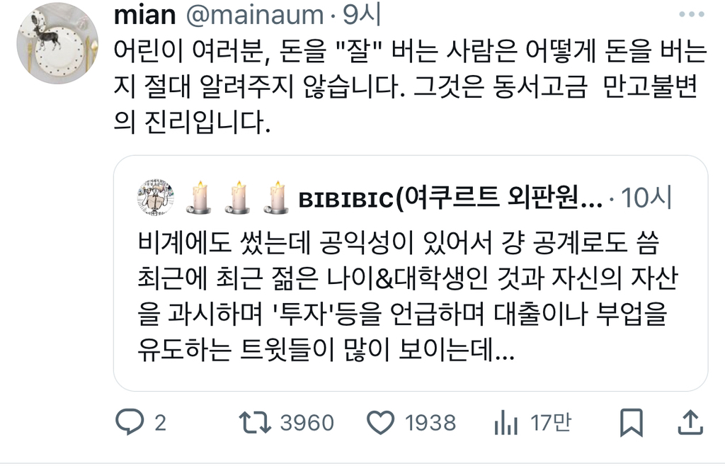 작성자짱원영 작성시간 26.02.03 진심 부업 안알려줌... ㅜㅜ 흑