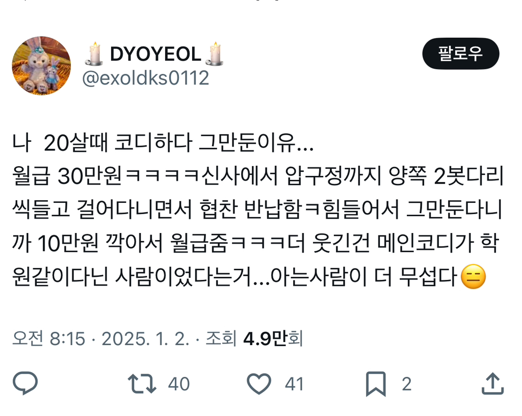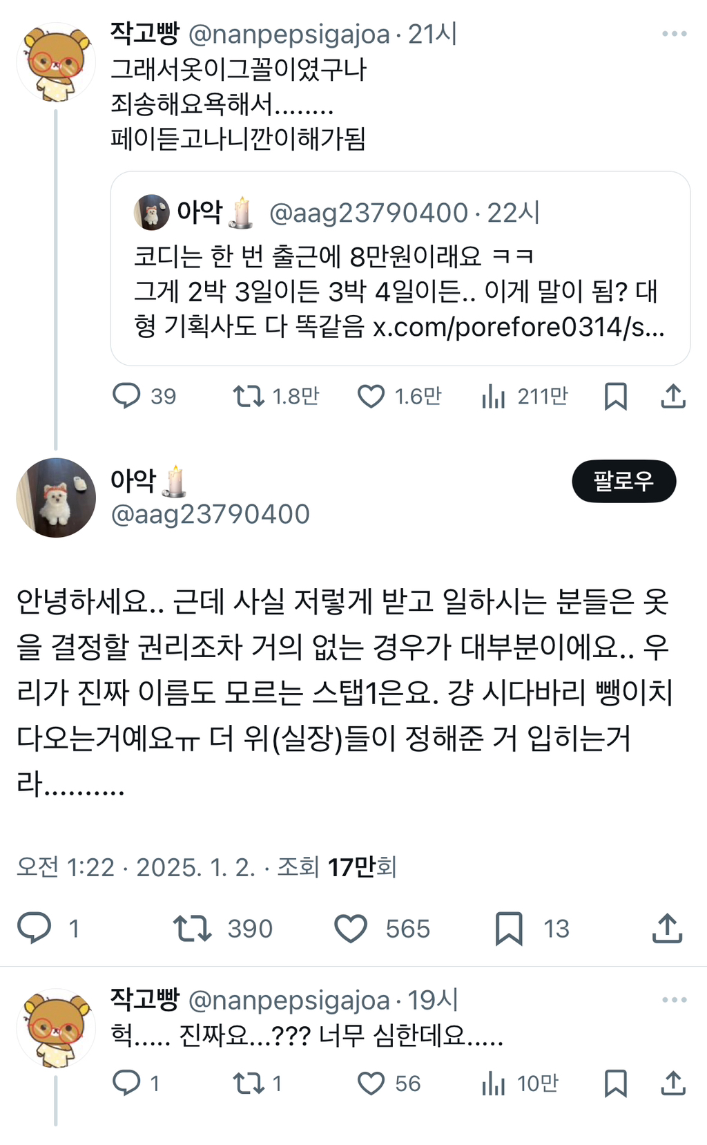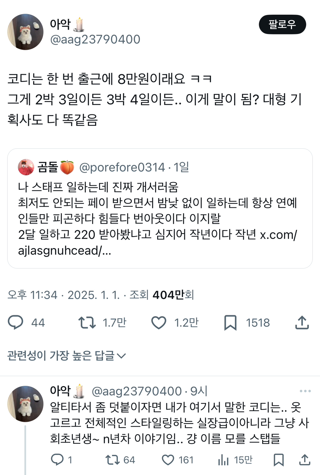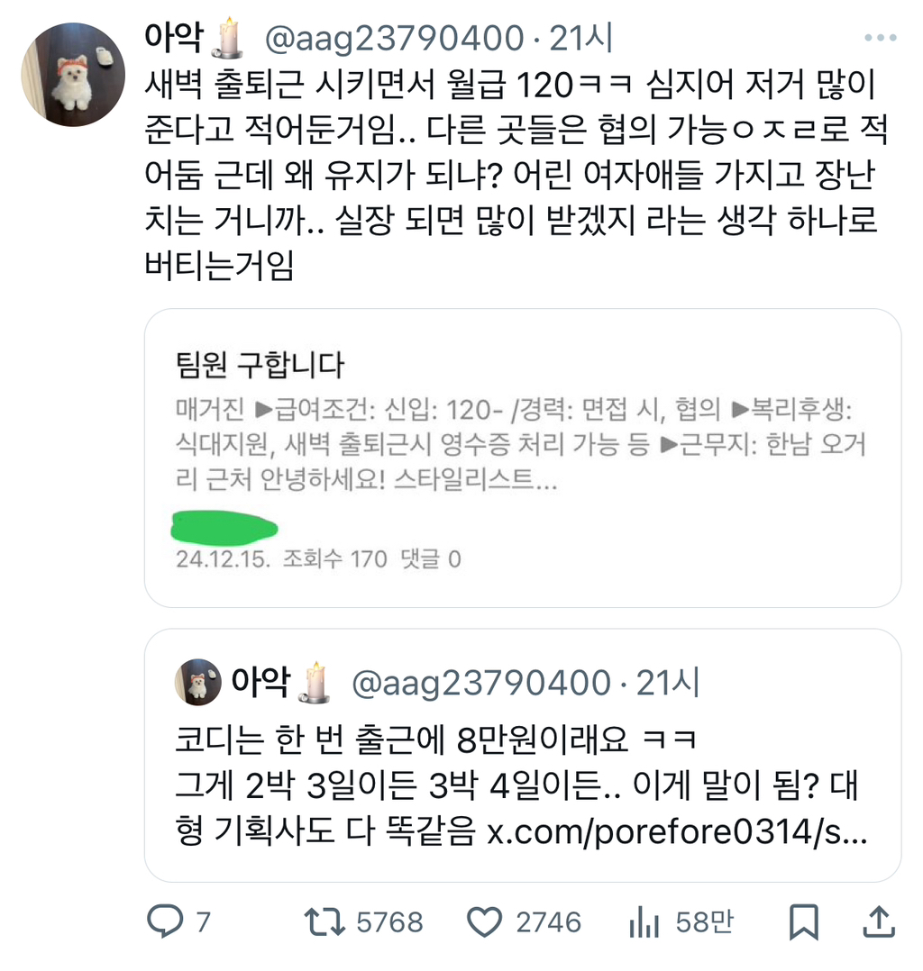 [스크랩] [기타]코디는 한 번 출근에 8만원이래요 ㅋㅋ 그게 2박 3일이든 3박 4일이든.. 이게 말이 됨?.twt
