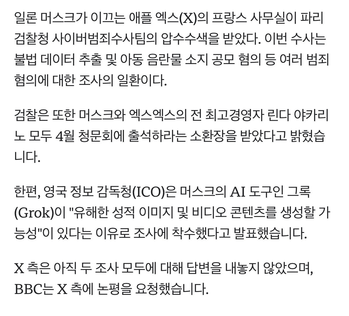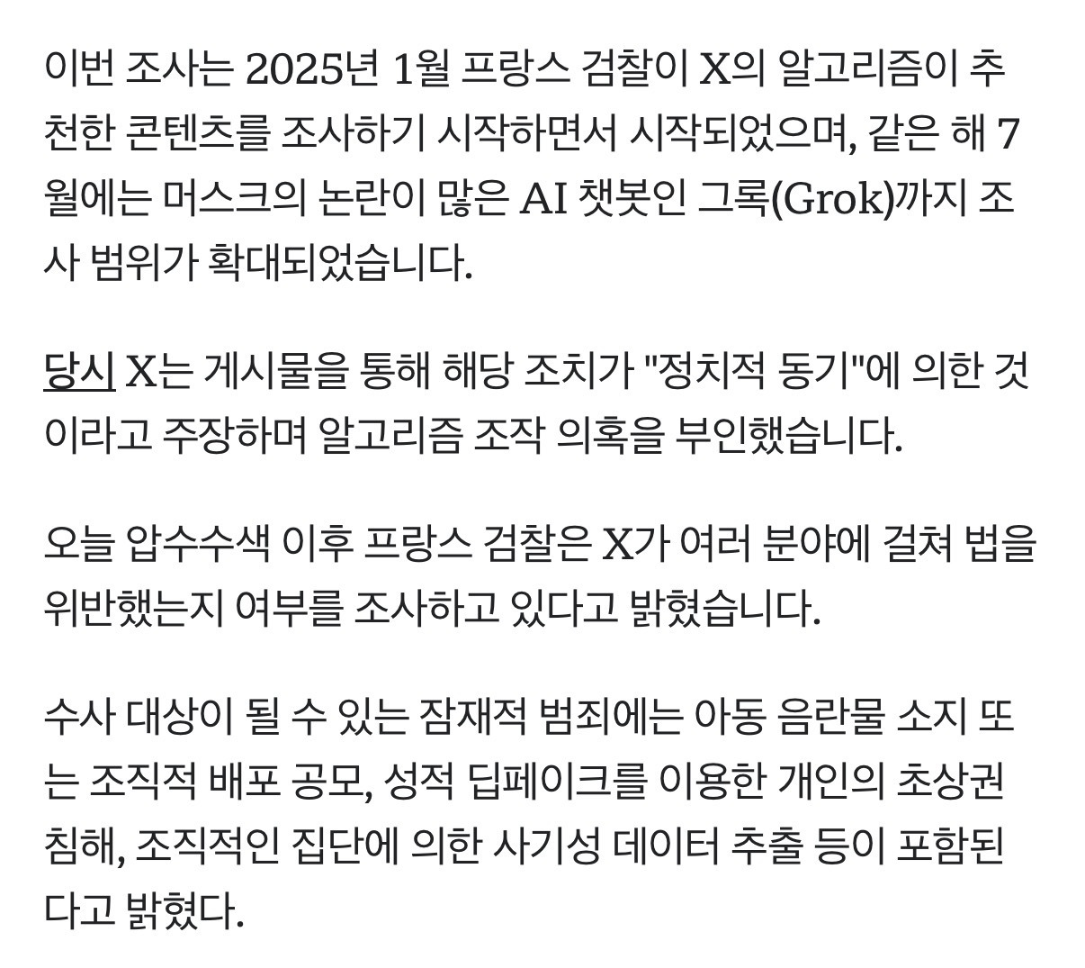 X 알고리즘 조작, 그록 AI 생성 딥페이크/아동 성착취물 유포 등 혐의 조사 중