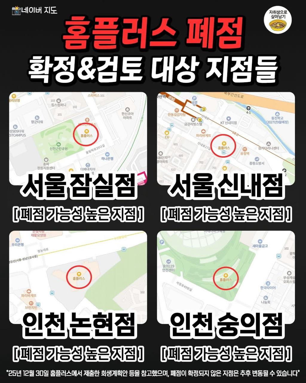 [스크랩] [기타]홈플러스 폐점 됐거나 폐점 검토 대상인 지점들.jog 작성자flflf|작성시간26.02.04|조회수28,160 목록 댓글 46 글자크기 작게가 글자크기 크게가 다음검색 스크랩 원문 : 이종격투기 현재 게시글 추가 기능 열기 북마크 공유하기 신고 센터로 신고 댓글 댓글 46 댓글쓰기 답글쓰기 댓글 리스트 작성자bluuee | 작성시간 26.02.04 우리동네는 지역에 홈플 하나만 덩그러니 있어서 신상 입고도 잘되더라.. 작성자과일이좋아 | 작성시간 26.02.04 왜자꾸 폐점하냐 ㅜㅜ 작성자파핑파핑파핑바나나 | 작성시간 26.02.04 동수원 홈플은 냄겨 제발 작성자영심ol | 작성시간 26.02.04 와 폐점하면 저기서 일했던 사람들은 다 어찌되는거야.... 작성자팅틴팅클 | 작성시간 26.02.04 폐점안돼도 물건이 없어... 댓글 전체보기