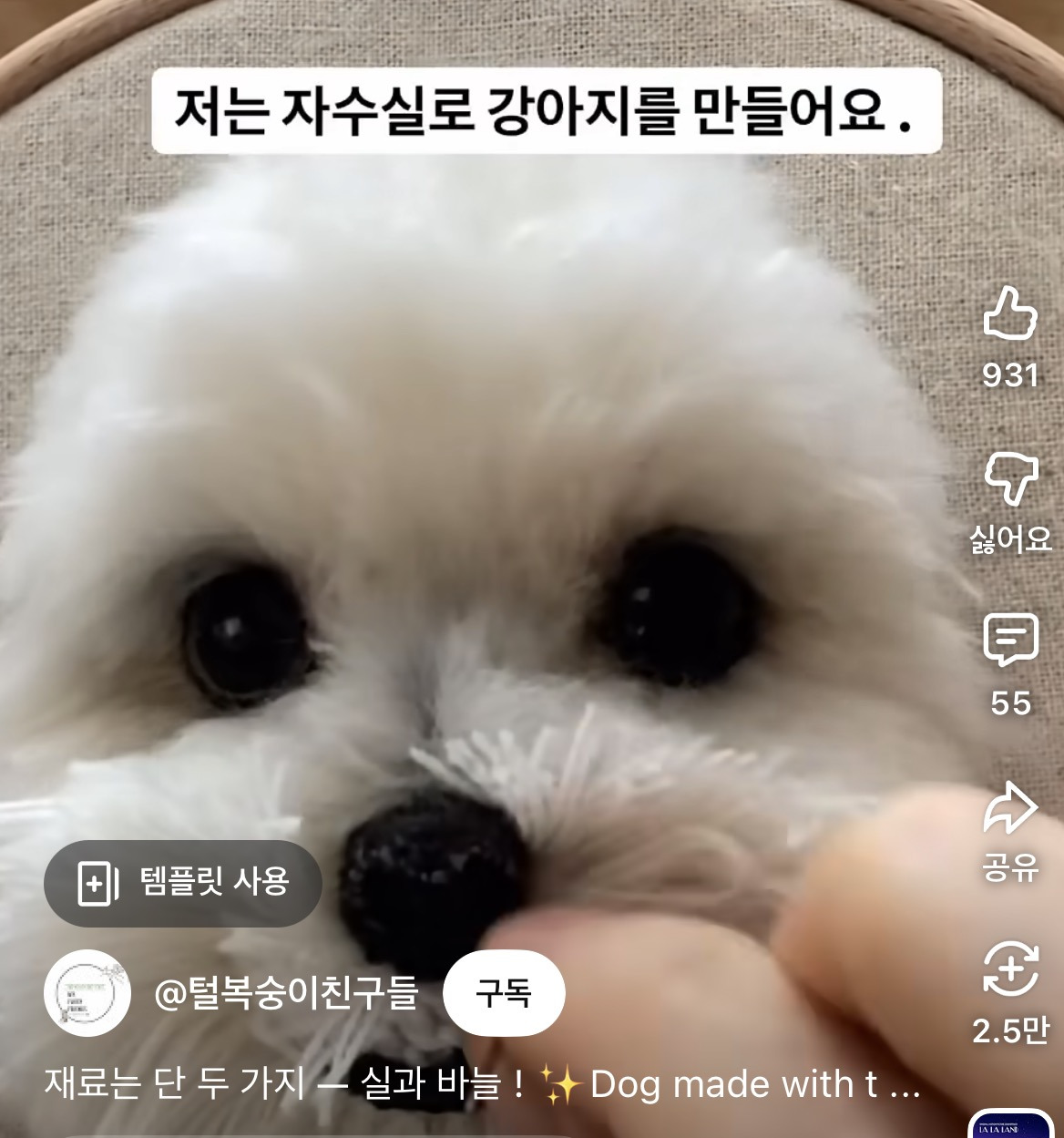 [흥미돋]실로 만든 강아지 작성자별그지같은데서온그대|작성시간26.02.04|조회수24,753 목록 댓글 13 글자크기 작게가 글자크기 크게가 출처: 여성시대 별그지같은데서온그대https://youtube.com/shorts/8PfuKA7ALVw?si=-RyOzMeYYKbUHKaw첨에 놀랐뇌;;; 다음검색 현재 게시글 추가 기능 열기 북마크 공유하기 신고 센터로 신고 댓글 댓글 13 댓글쓰기 답글쓰기 댓글 리스트 작성자하쿵 | 작성시간 26.02.04 살아있어요 ㄷㄷㄷ 작성자이게머선일이야 | 작성시간 26.02.04 분명...나랑 눈마주쳤는데??? 히한타.. 작성자이재명애교정치 | 작성시간 26.02.04 헐진짜강쥐인줄 작성자커뮤사세 옳지않아 | 작성시간 26.02.04 와... 금손 작성자홍김동 | 작성시간 26.02.04 돈 주고 파시나요..? 울 강쥐도 만들고싶다 ㅠ 댓글 전체보기