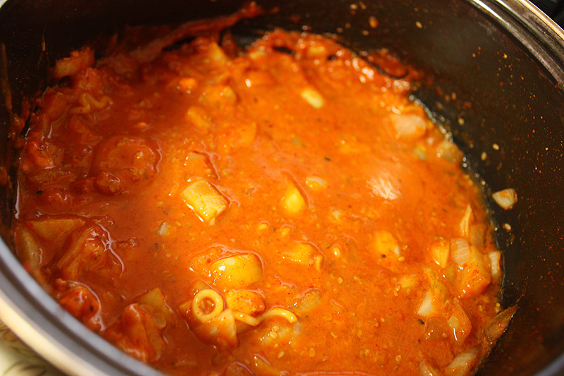 양념(고추장 2스푼/설탕 1스푼/깨 1스푼/ 고춧가루 1스푼/마늘 엄지손톱만큼/라면스프 1스푼/다시다 반스푼/케찹 한스푼)
