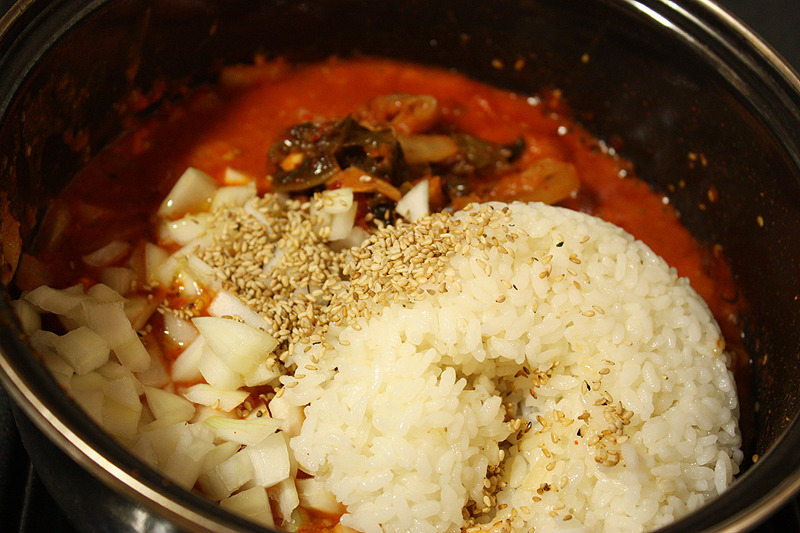 중간불켜고 양파남은거넣고 김치넣고