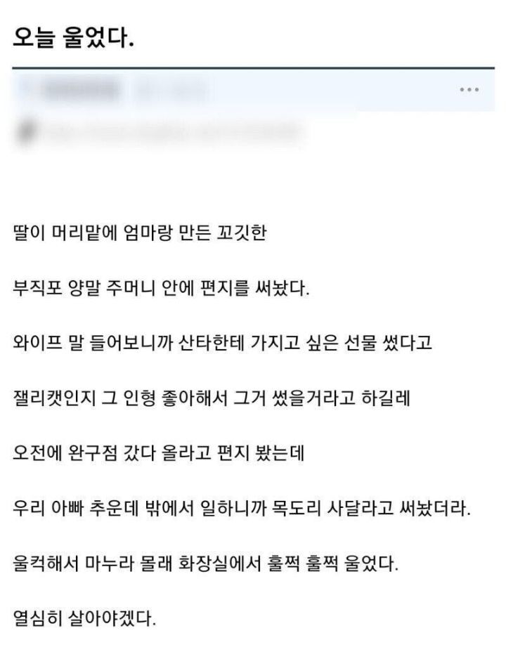 [스크랩] [흥미돋]오늘 딸 때문에 울었다 작성자뭉툭뭉툭|작성시간26.02.04|조회수35,583 목록 댓글 29 글자크기 작게가 글자크기 크게가 출처 : 여성시대 몽비 다음검색 스크랩 원문 : *여성시대* 차분한 20대들의 알흠다운 공간 현재 게시글 추가 기능 열기 북마크 공유하기 신고 센터로 신고 댓글 댓글 29 댓글쓰기 답글쓰기 댓글 리스트 삭제된 댓글입니다. 답댓글 작성자무슨사궈가줄임말이에요ㅋ | 작성시간 26.02.04 계략공 여시 ㄷㄷㄴ 작성자ㅏㅐㅔㅣㅓ | 작성시간 26.02.04 ㅋㅋㅋㅋㅋㅋㅋㅋㅋㅋ아 댓 눈물났다 쏙들어갔다 난리네 작성자바밤바맛몽블랑 | 작성시간 26.02.04 사랑스럽다 작성자라빠빠바람 | 작성시간 26.02.04 엄마랑 같이 썼으니까 엄마 아이디어 아닐까 싶은…… 생각……… 댓글 전체보기