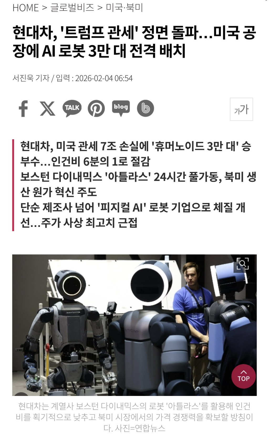 현대자동차그룹이 도널드 트럼프 미국 행정부의 관세 부과에 따른 수익성 악화를 극복하기 위해 2026년부터 미국 내 자동차 생산 공장에 인공지능 기반 휴머노이드 로봇을 대거 투입한다.