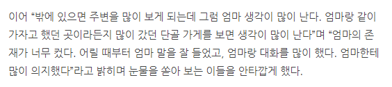 "나한테 잘해주는데 받기만 하고 해드린 게 없어서 죄송하다"