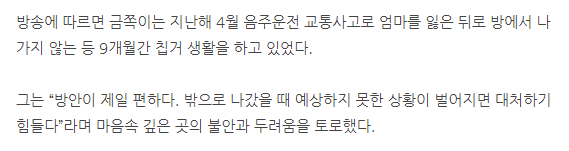 영재반 우등생이였는데, 음주운전 교통사고로 엄마가 세상을 떠난 후 방 안에서만 생활하게 된 중2 금쪽이