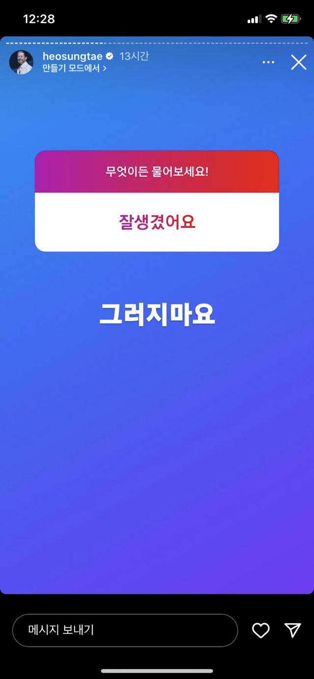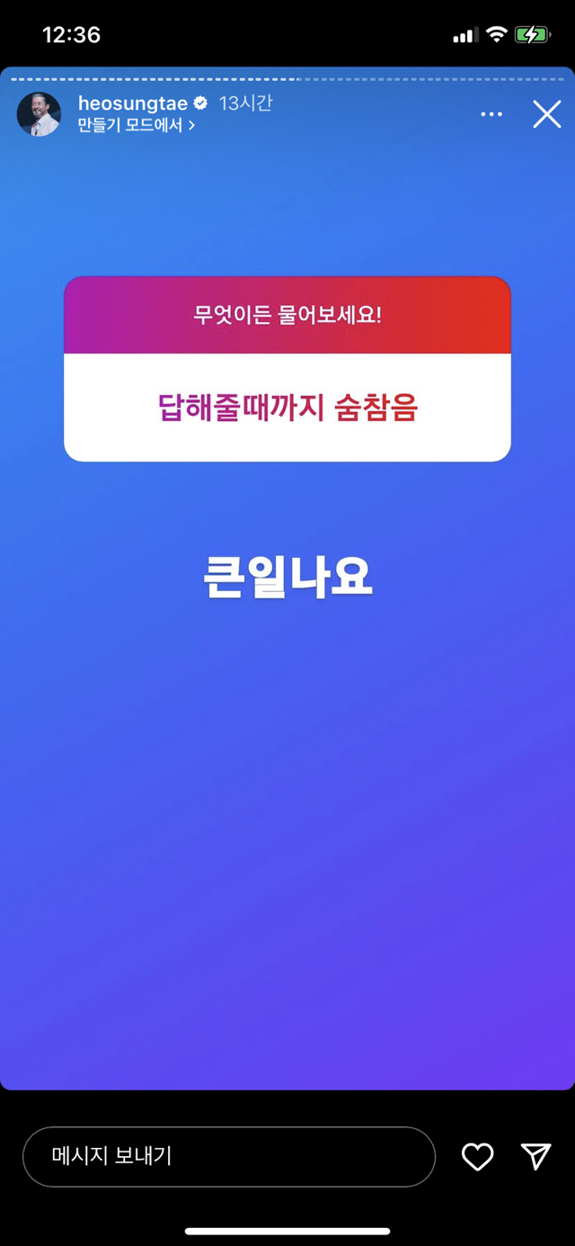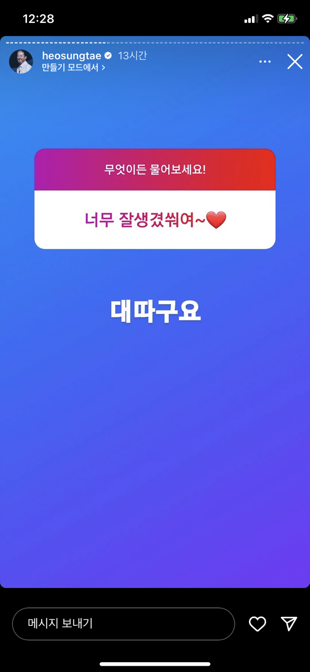 [스크랩] [흥미돋]배우 허성태 인스타스토리 무물.jpg 작성자Night|작성시간26.02.04|조회수46,490 목록 댓글 40 글자크기 작게가 글자크기 크게가 출처 : https://theqoo.net/2714573017 다음검색 스크랩 원문 : *여성시대* 차분한 20대들의 알흠다운 공간 현재 게시글 추가 기능 열기 북마크 공유하기 신고 센터로 신고 댓글 댓글 40 댓글쓰기 답글쓰기 댓글 리스트 작성자ena ena | 작성시간 26.02.05 미끼이거 왤케 웃기냐 ㅋㅋㅋㅋㅋㅋㅋㅋㅋㅋㅋㅋㅋㅋㅋㅋㅋㅋ 작성자앵두콘 | 작성시간 26.02.05 송강홐ㅋㅋㅋㅋ 작성자컨텍스트 | 작성시간 26.02.05 ㅋㅋㅋㅋㅋㅋㅋㅋㅋㅋㅋㅋㅋㅋㅋㅋㅋㅋㅋ 작성자동구라미라미 | 작성시간 26.02.05 무물장인 ㅋㅋㅋㅋ 작성자이재명애교정치 | 작성시간 26.02.05 송강호 ㅋㅋㅋㅋㅋㅋㅋㅋㅋㅋㅋㅋㅋㅋㅋㅋㅋㅋㅋ 댓글 전체보기