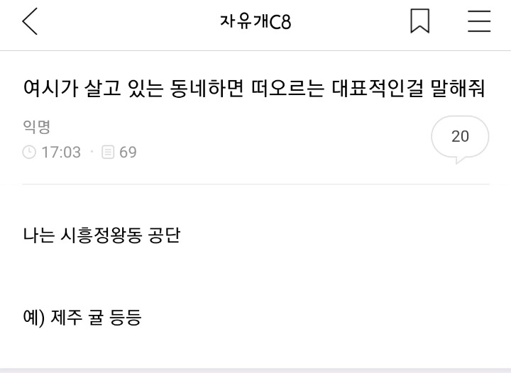 [스크랩] [흥미돋]내가 살고 있는 동네의 대표적인것을 말해보자 작성자뉴누뉴|작성시간26.02.04|조회수11,169 목록 댓글 183 글자크기 작게가 글자크기 크게가 출처 : 여성시대 입만 열면 구라 유명한 음식 , 축제 , 여행지 , 상징 , 마스코트 등등 다음검색 스크랩 원문 : *여성시대* 차분한 20대들의 알흠다운 공간 현재 게시글 추가 기능 열기 북마크 공유하기 신고 센터로 신고 댓글 댓글 183 댓글쓰기 답글쓰기 댓글 리스트 작성자시큼한복숭아 | 작성시간 26.02.06 간절곶 작성자맪이 | 작성시간 26.02.06 호수..! 작성자배구천재배유나 | 작성시간 26.02.06 강감찬 작성자곤방지당 | 작성시간 26.02.06 엠파이어스테이트빌딩 작성자쫀그링 | 작성시간 26.02.06 센트럴파크 댓글 전체보기